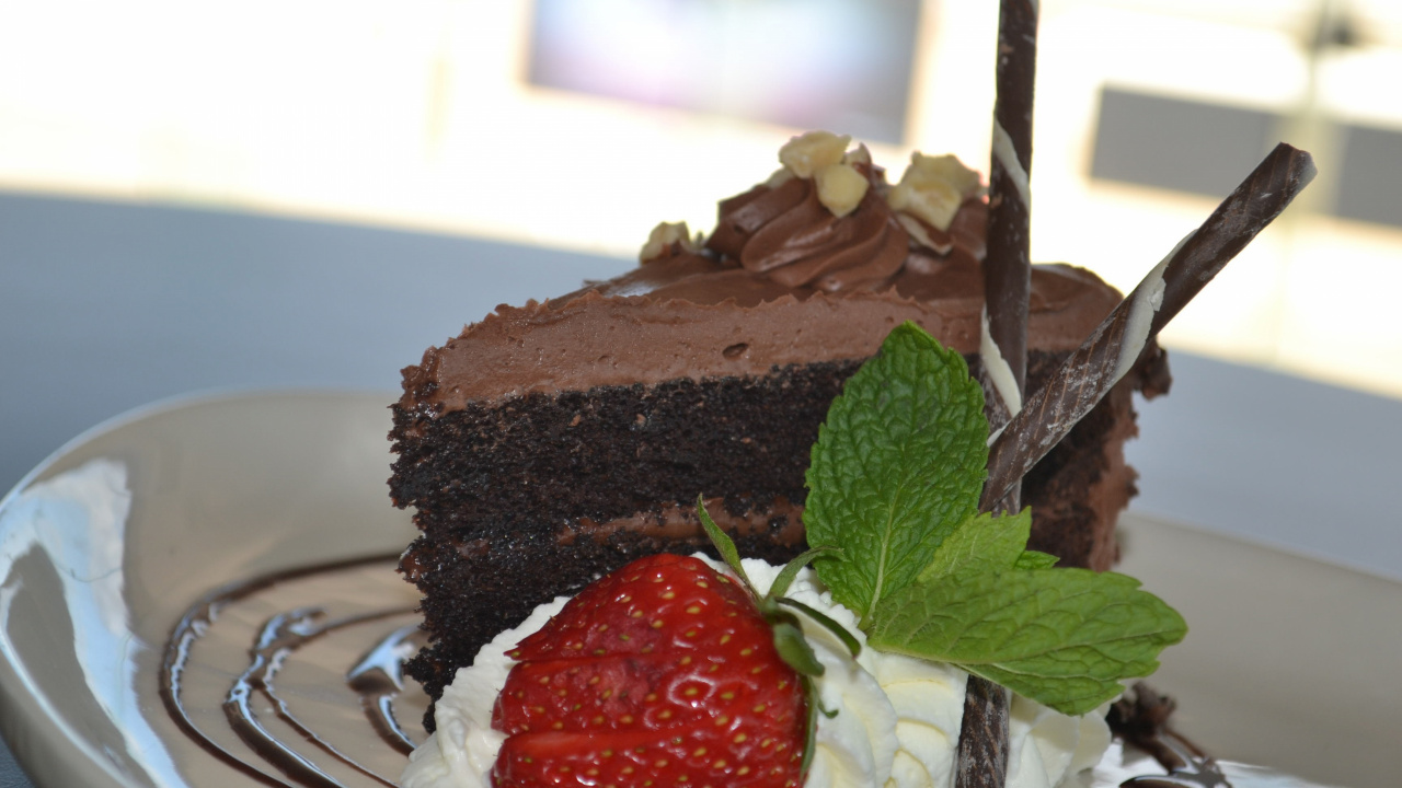 Обои 1280x720 шоколадный торт, шоколад, взбитые сливки, пища, бисквитный шоколадный торт, HD, HDV, 720p, 16:9 картинка