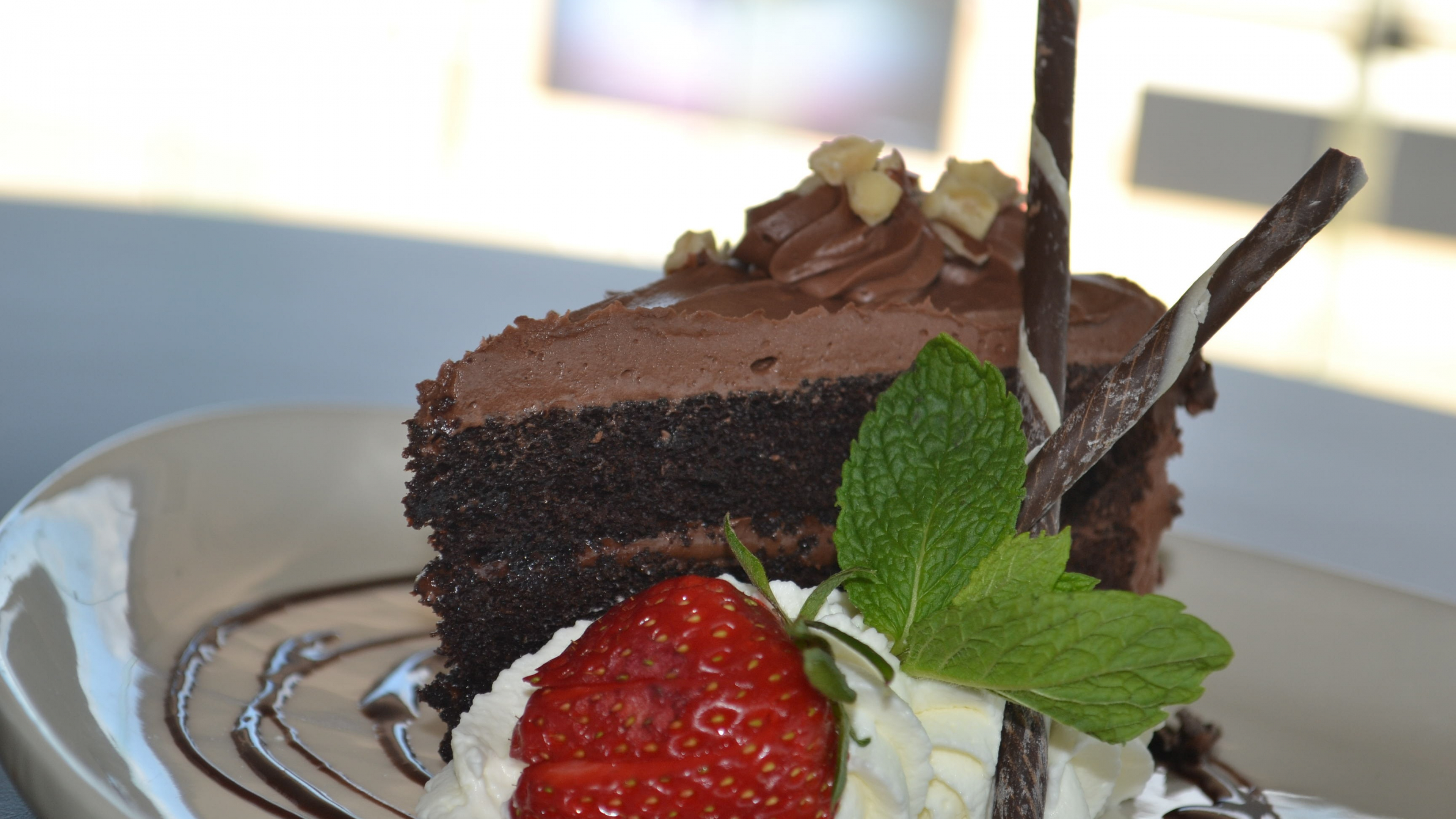 Обои 3840x2160 шоколадный торт, шоколад, взбитые сливки, пища, бисквитный шоколадный торт, 4K Ultra HD картинка