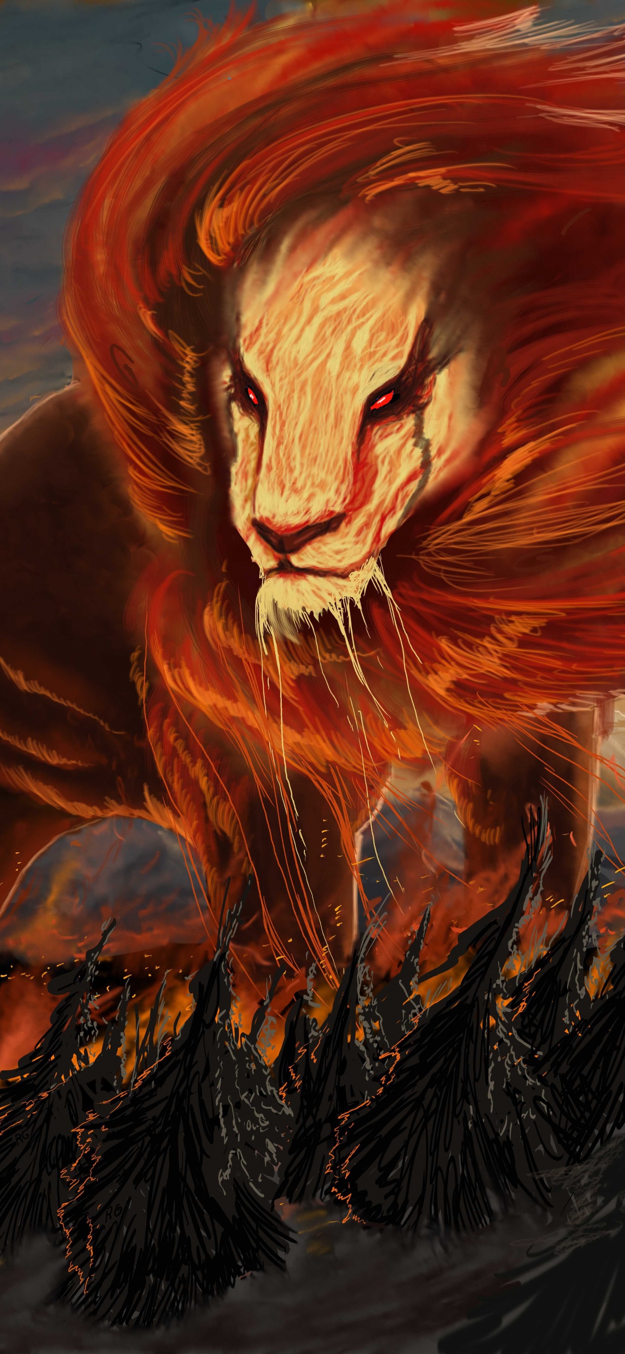 Обои мифология, вымышленный персонаж, вымирание, Лев, лава для iPhone XS Max, заставка, 1242x2688 картинка