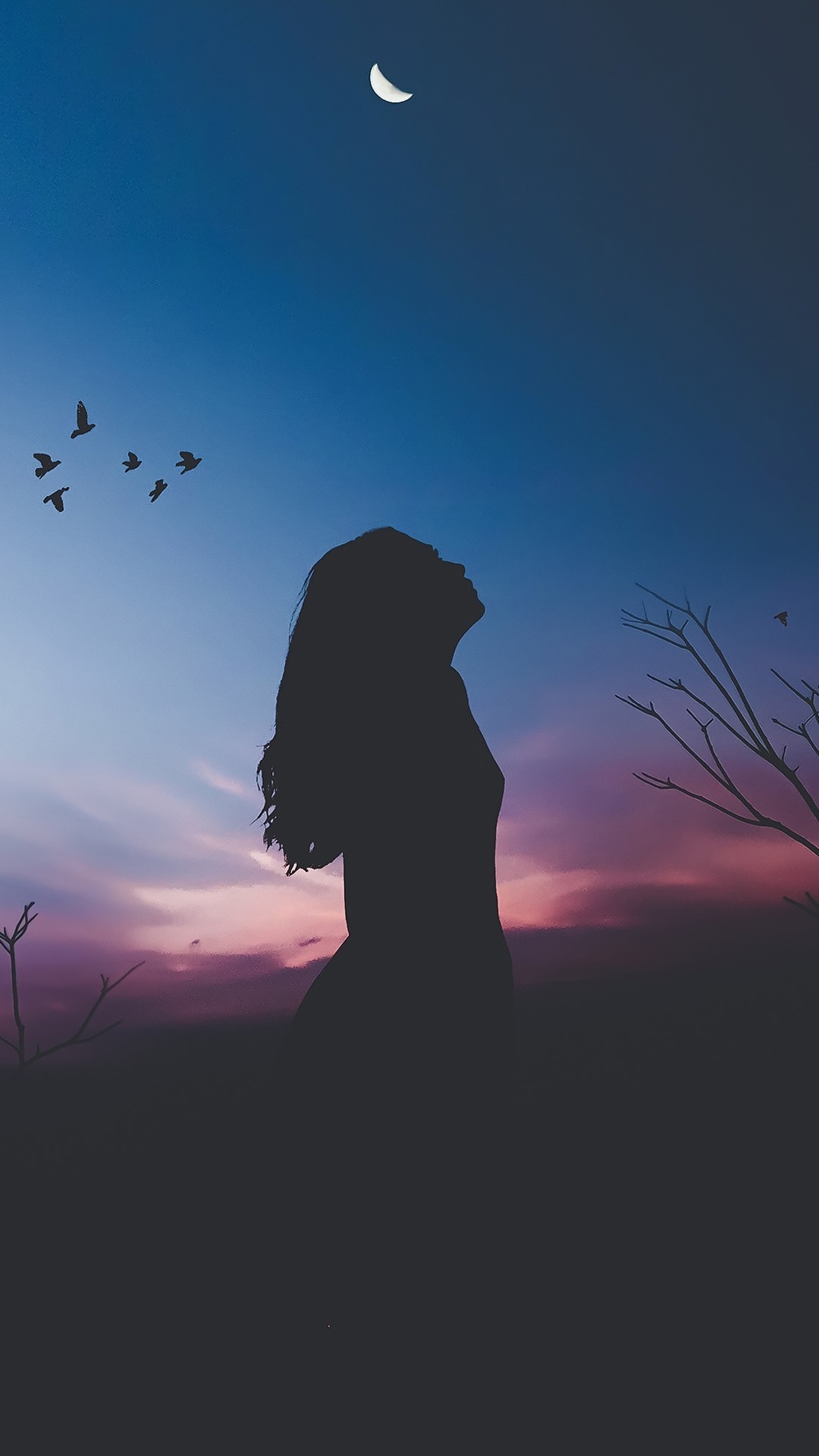 Обои атмосфера, облако, луна, лазурный, сумрак для iPhone 6S+/7+/8+, заставка, 1080x1920 картинка