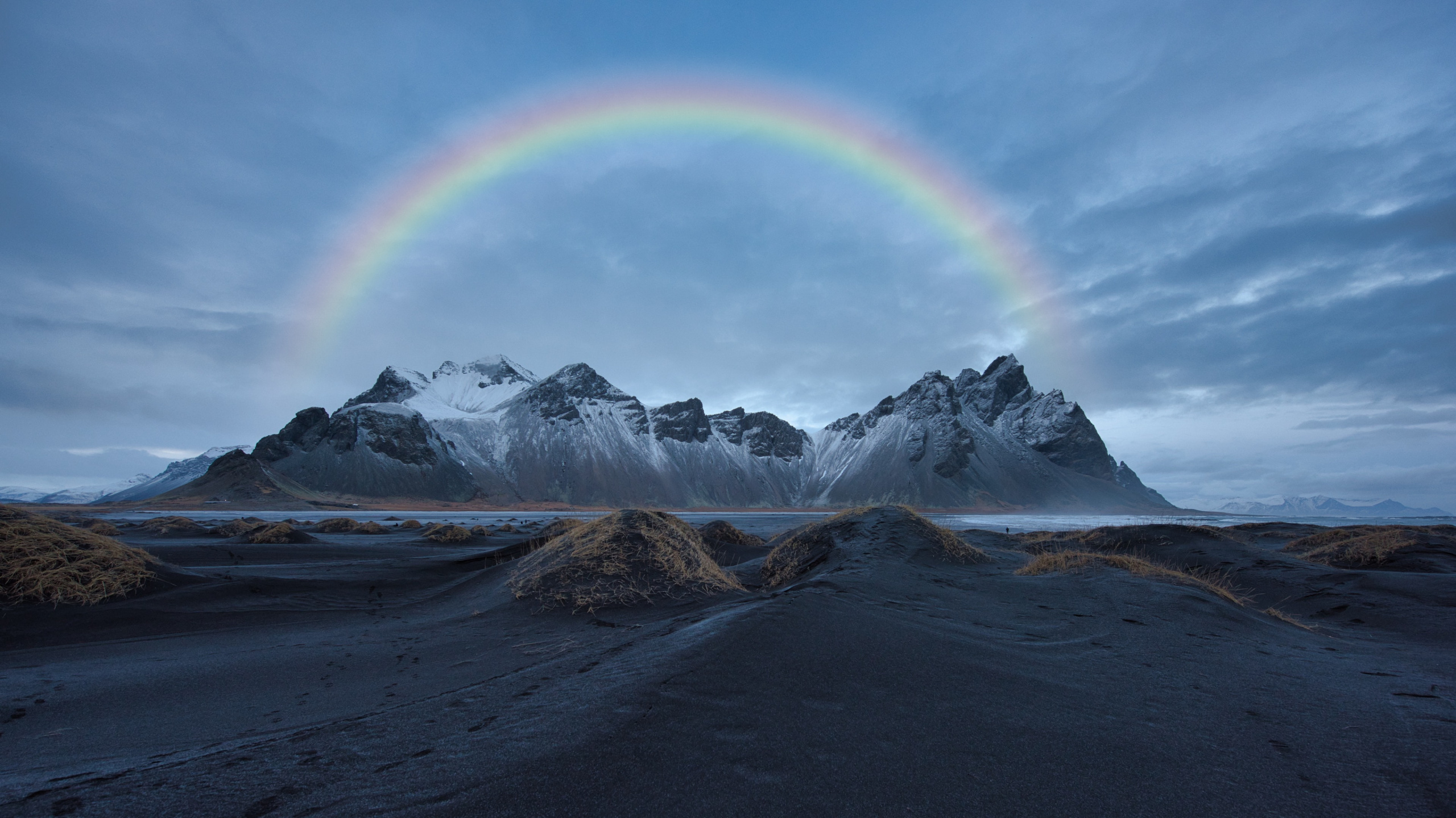 Обои 2560x1440 гора, Радуга, облако, вода, экорегион, WQHD, QHD, 16:9 картинка