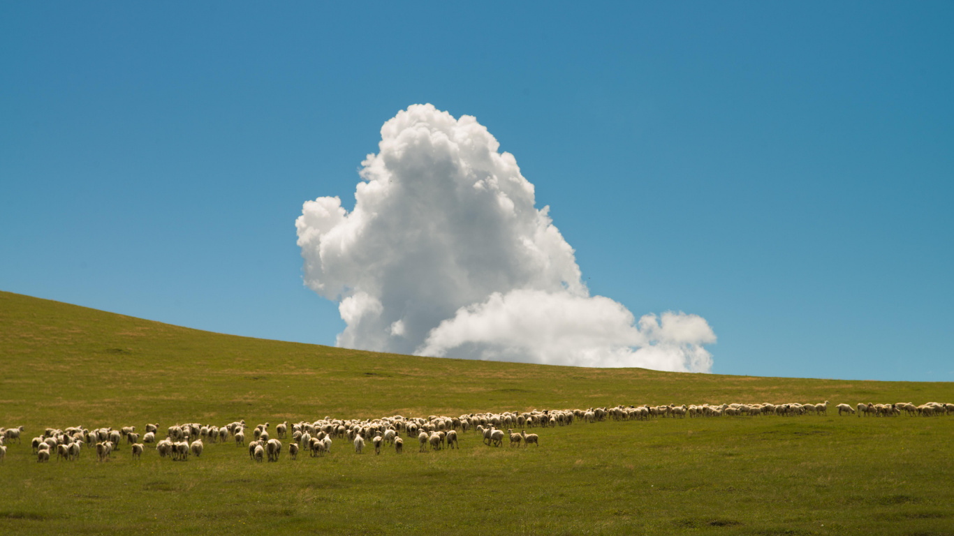 Обои 1366x768 сенокосное угодье, облако, растение, природный ландшафт, дерево, HD ready картинка