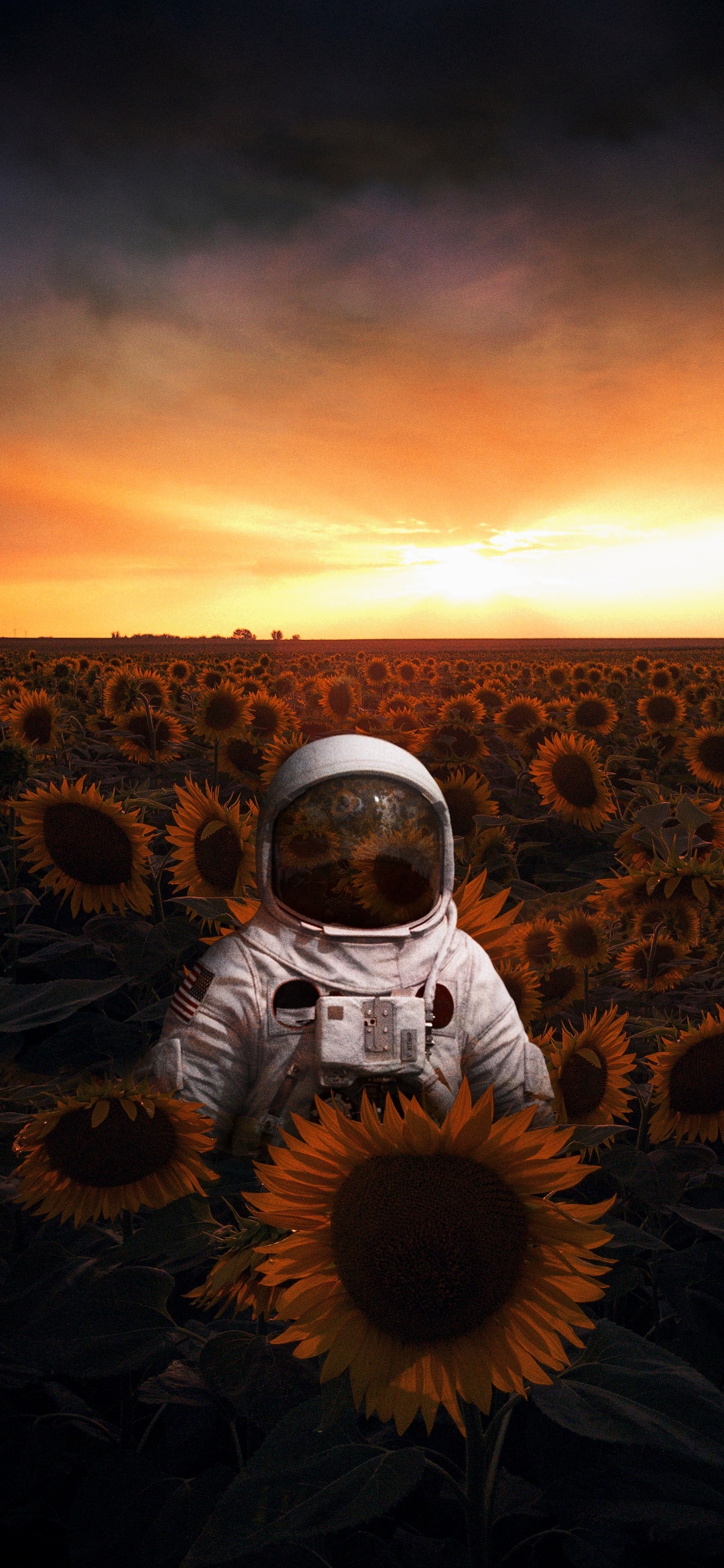 Обои космонавт в поле, астронавт, облако, растение, экорегион, фото, заставка