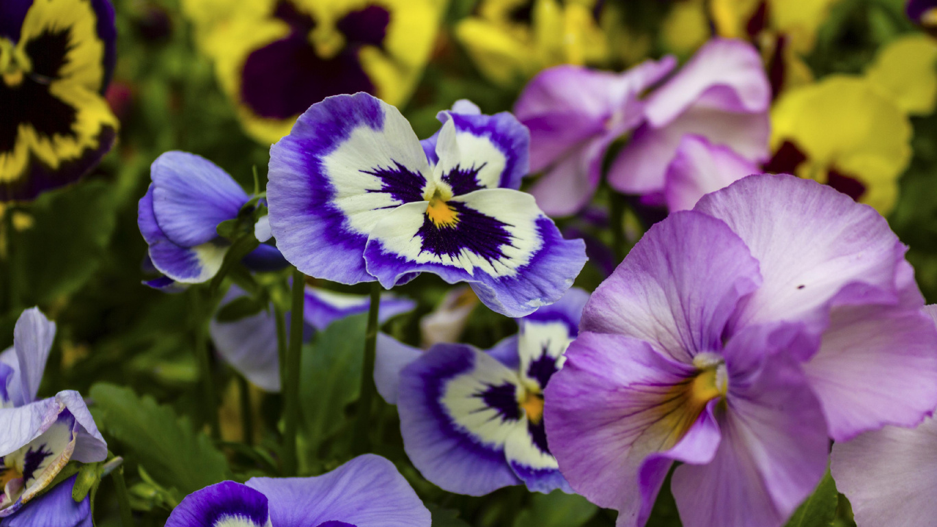 Обои 1366x768 анютины глазки, однолетнее растение, цветок, растение, пурпур, HD ready картинка