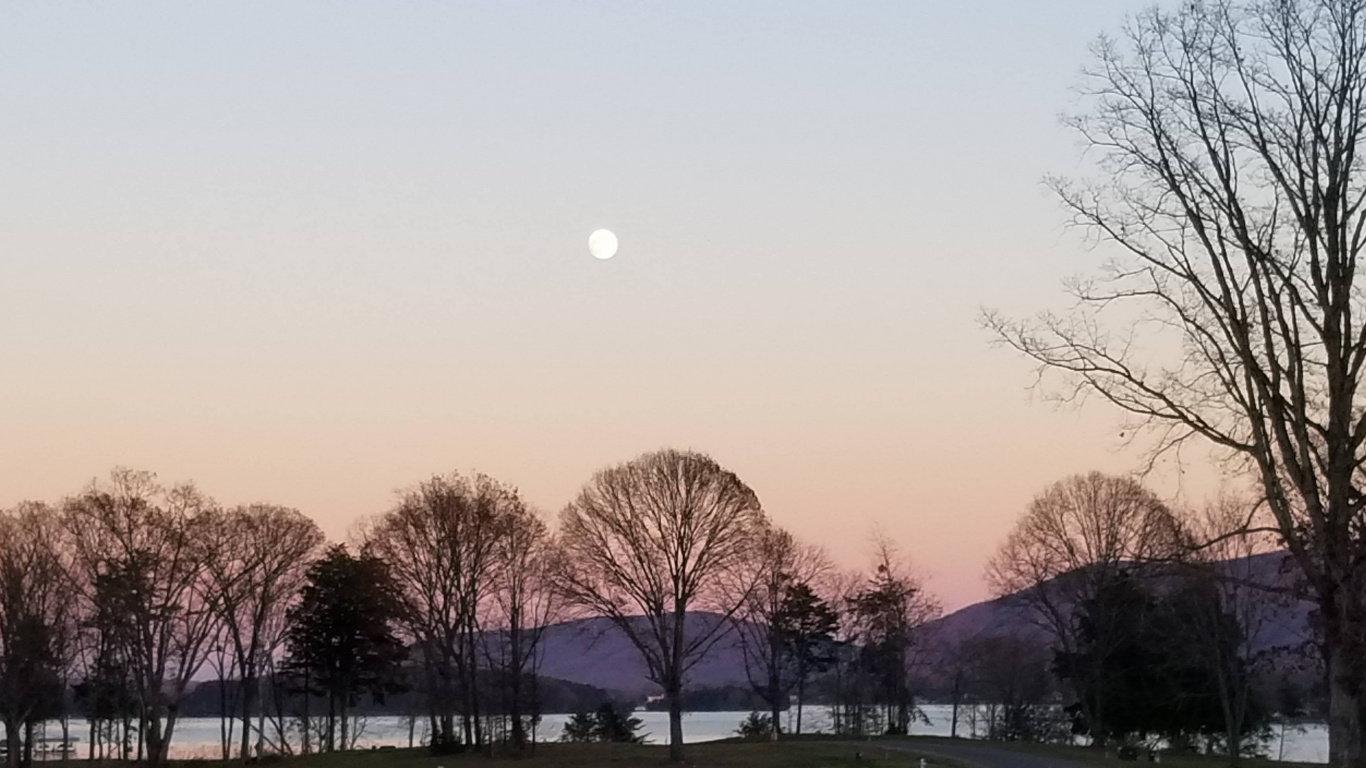 Обои 1366x768 луна, Smith Mountain Lake, гора, растение, атмосфера, HD ready картинка