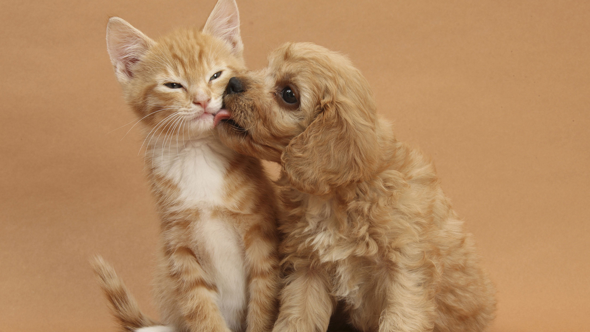 Обои 1920x1080 кошки и собаки милые, щенок, котенок, регдолл, мейн кун, Full HD, HDTV, 1080p 16:9 картинка