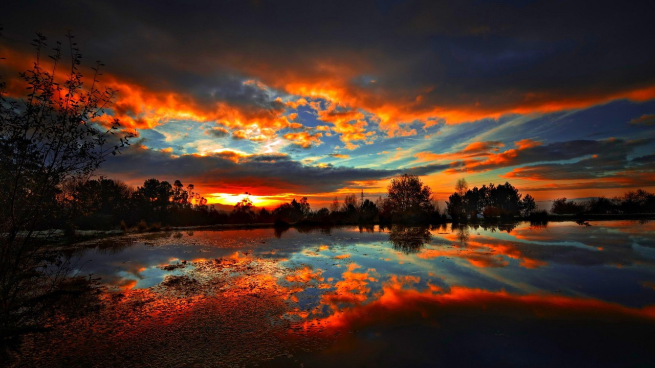 Обои 1280x720 живописный закат, закат, восход солнца, облако, вода, HD, HDV, 720p, 16:9 картинка