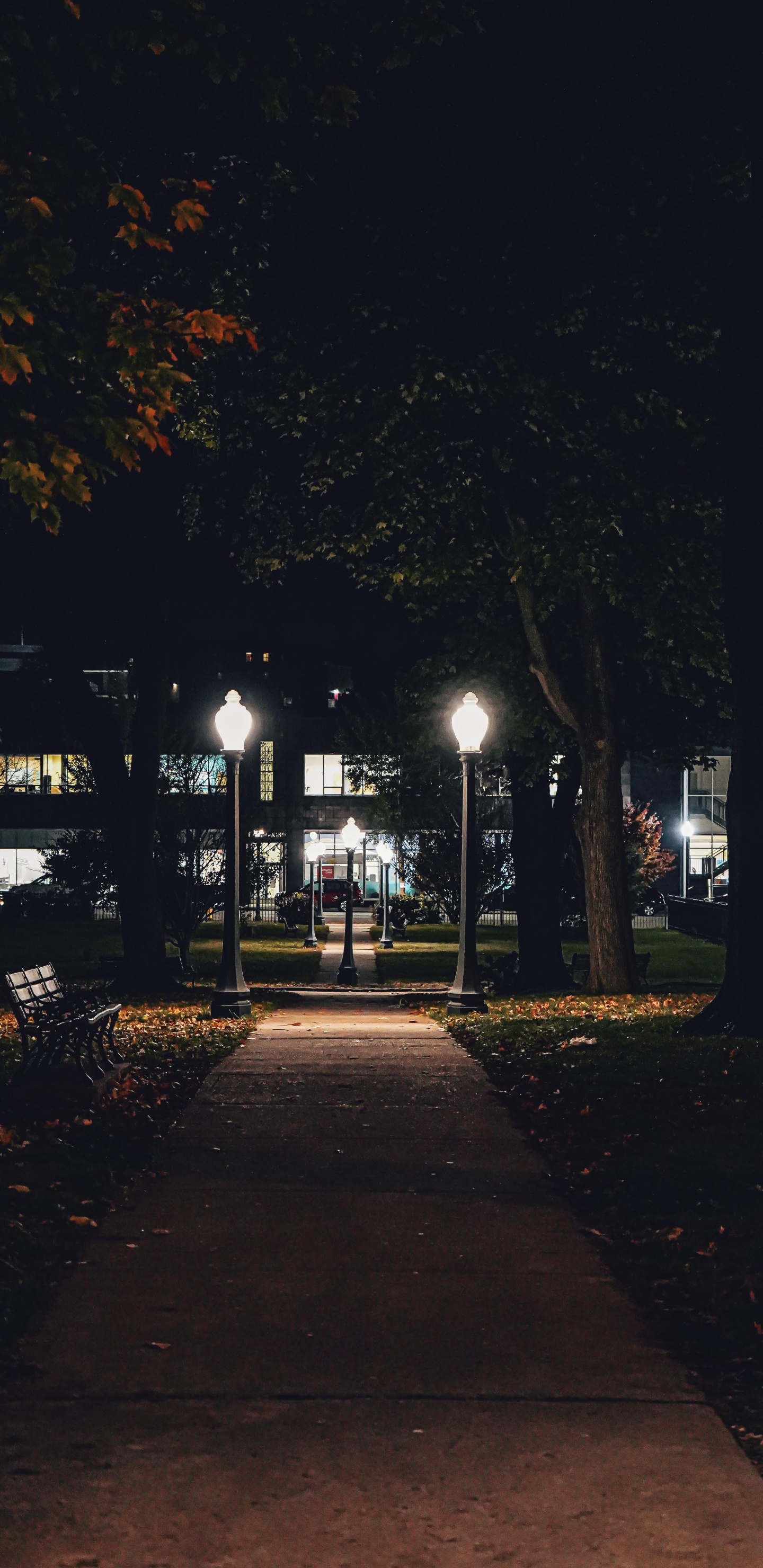 Обои ночь, растение, автомобильное освещение, лист, ветвь для Samsung Galaxy S8/S8+/S9/S9+/Note 8/Note 9 QHD, заставка, 1440x2960 картинка