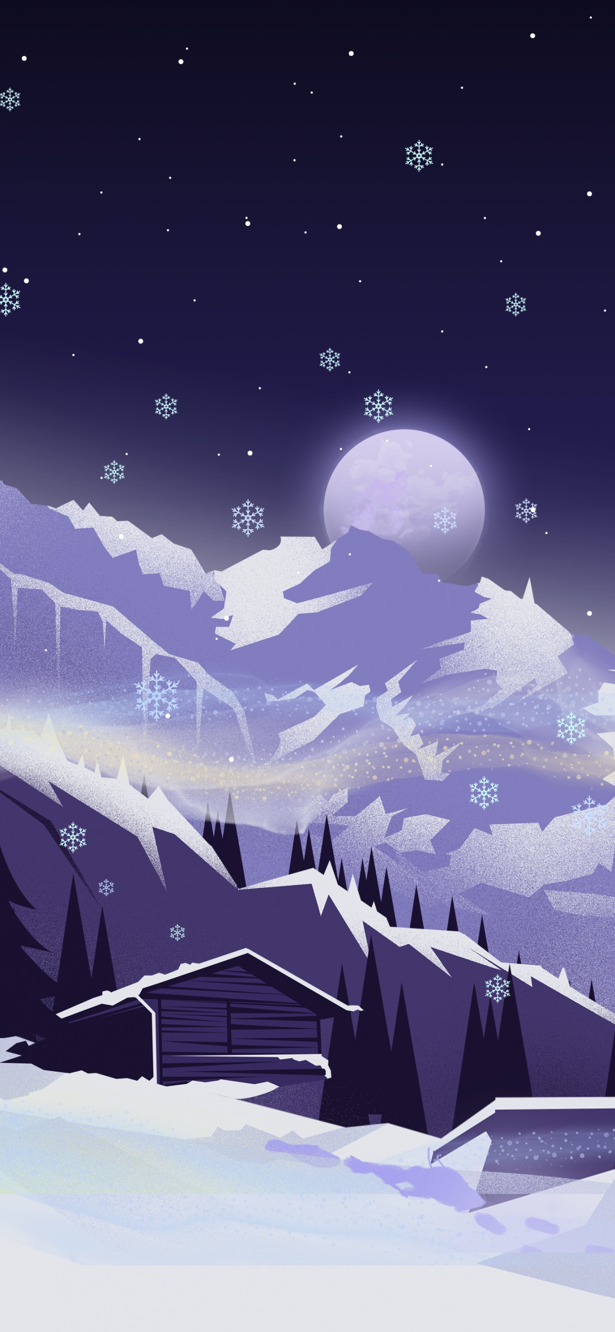 Обои иллюстрация, снег, атмосфера, мир, луна для iPhone XS Max, заставка, 1242x2688 картинка