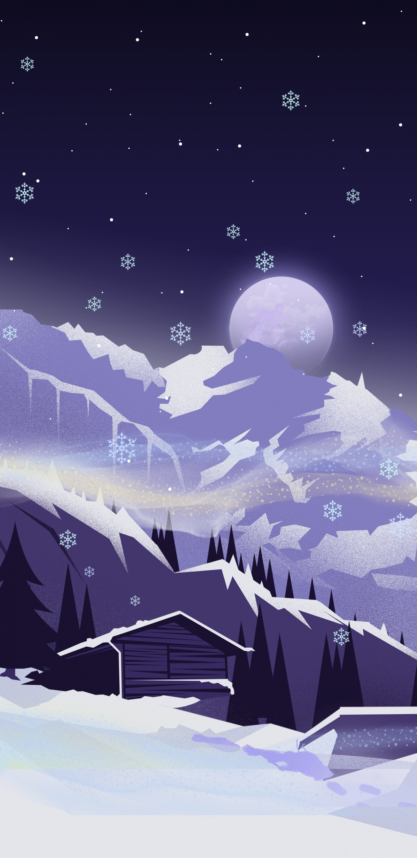 Обои иллюстрация, снег, атмосфера, мир, луна для Samsung Galaxy S8/S8+/S9/S9+/Note 8/Note 9 QHD, заставка, 1440x2960 картинка