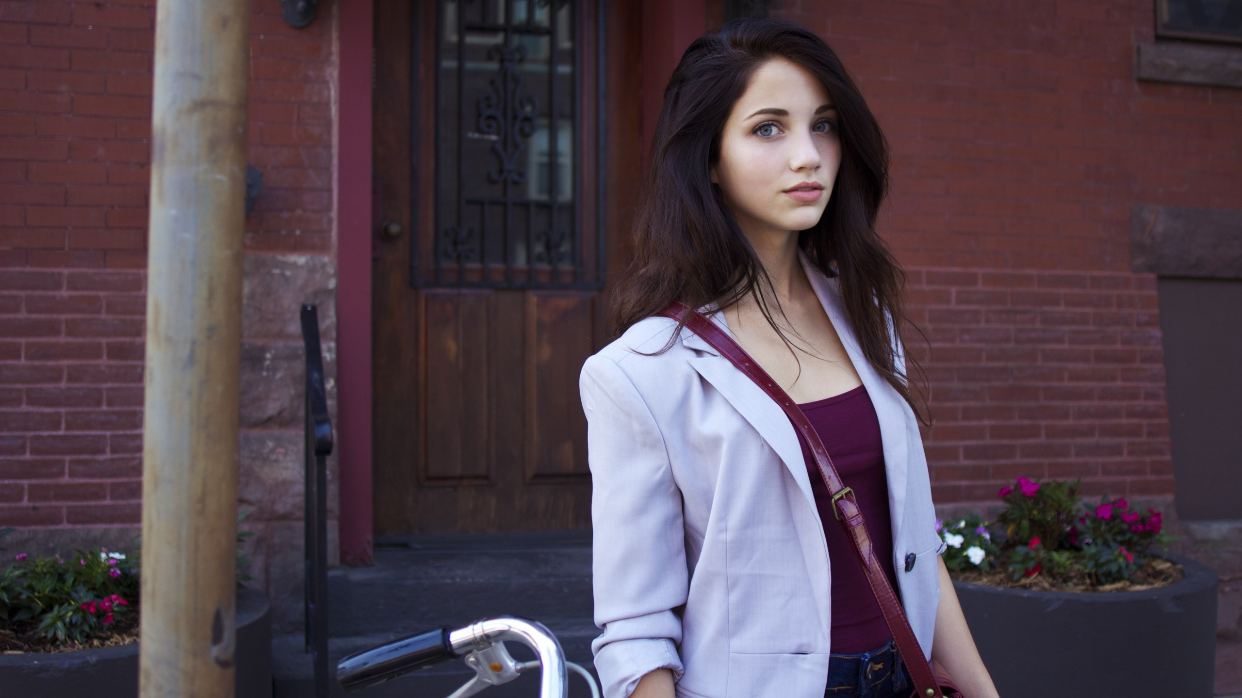 Обои 2560x1440 Эмили Радд, губа, растение, рубашка, фэшн, WQHD, QHD, 16:9 картинка