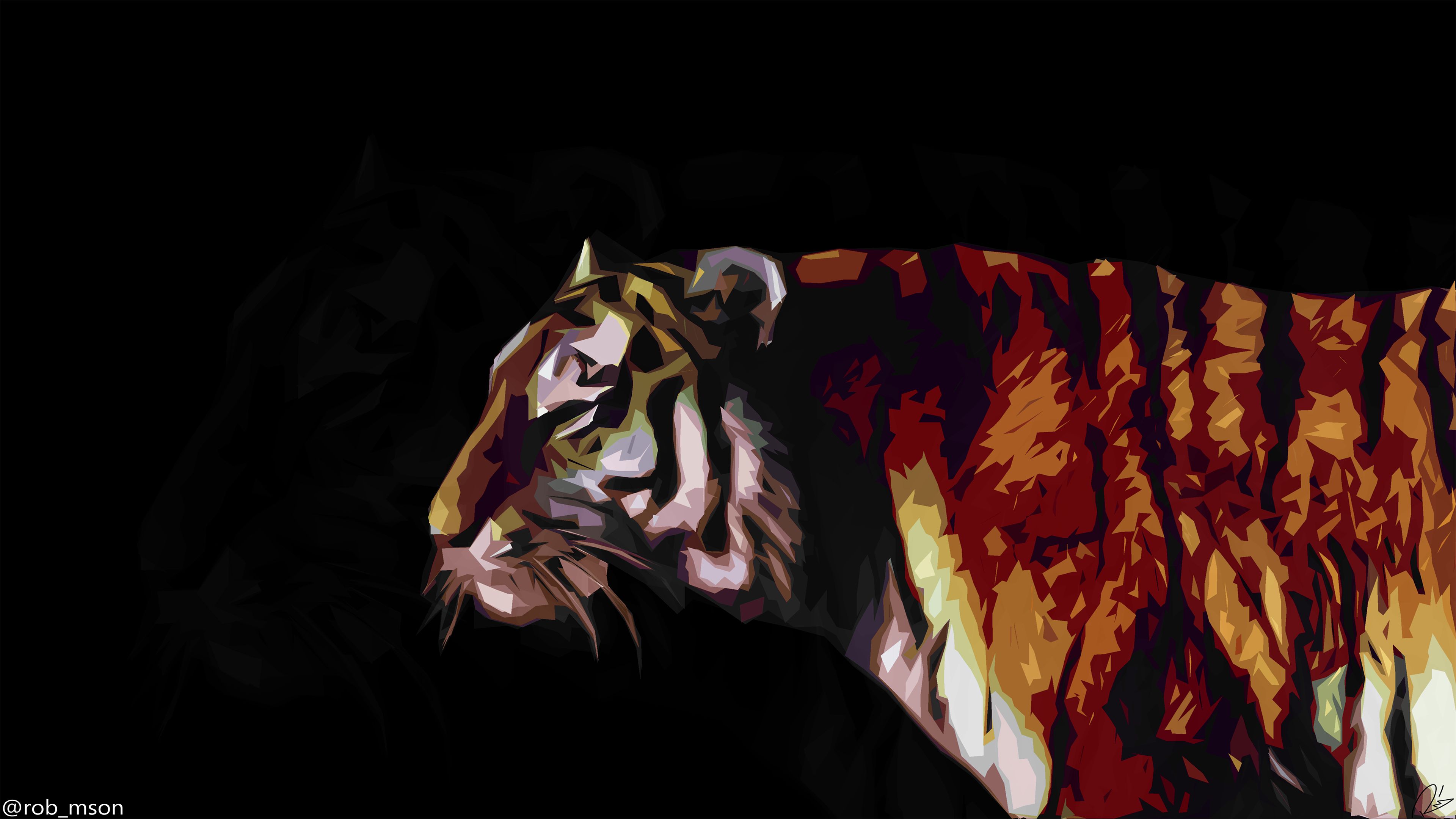 Обои тигр, арт, бенгальский тигр, Амурский тигр, рев, фото, заставка