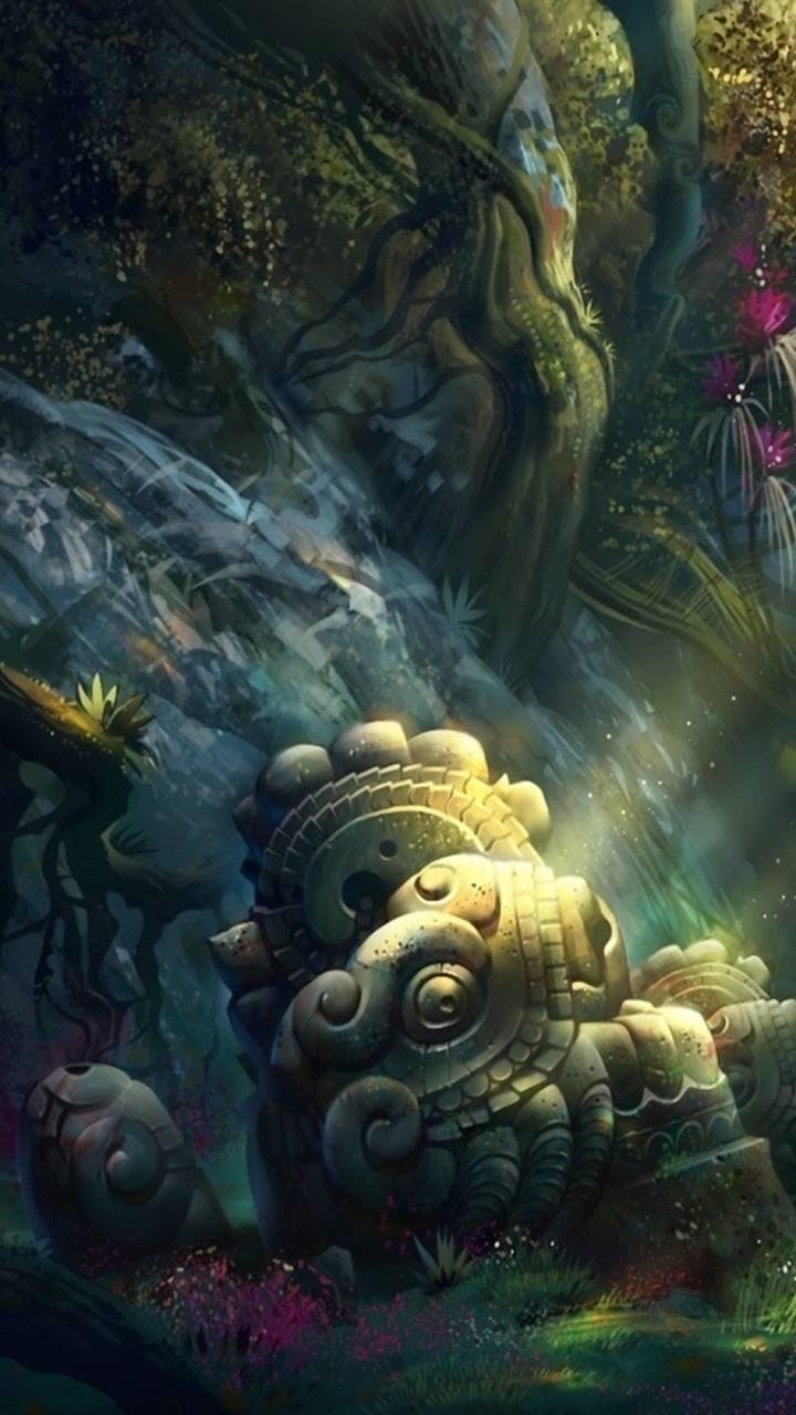 Обои фэнтези, фантастическое искусство, лес, природа, джунгли для HD Samsung Galaxy S3/J3/J4/J5, Meizu M5, Sony Xperia L1/L2, заставка, 720x1280 картинка