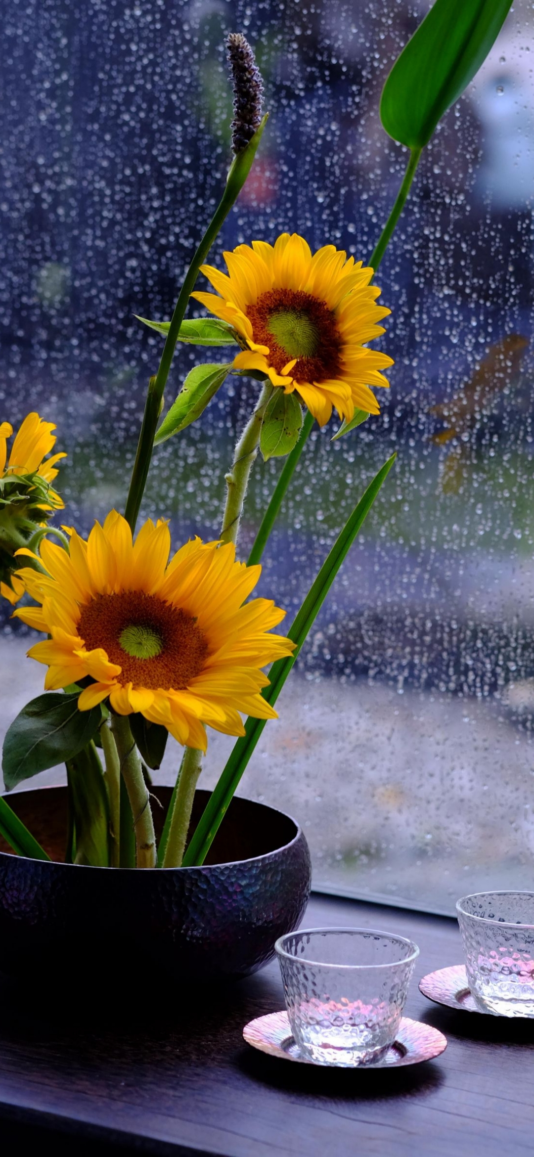Обои доброе утро дождливый подсолнух, утро, подсолнечник, день, днем, фото, заставка
