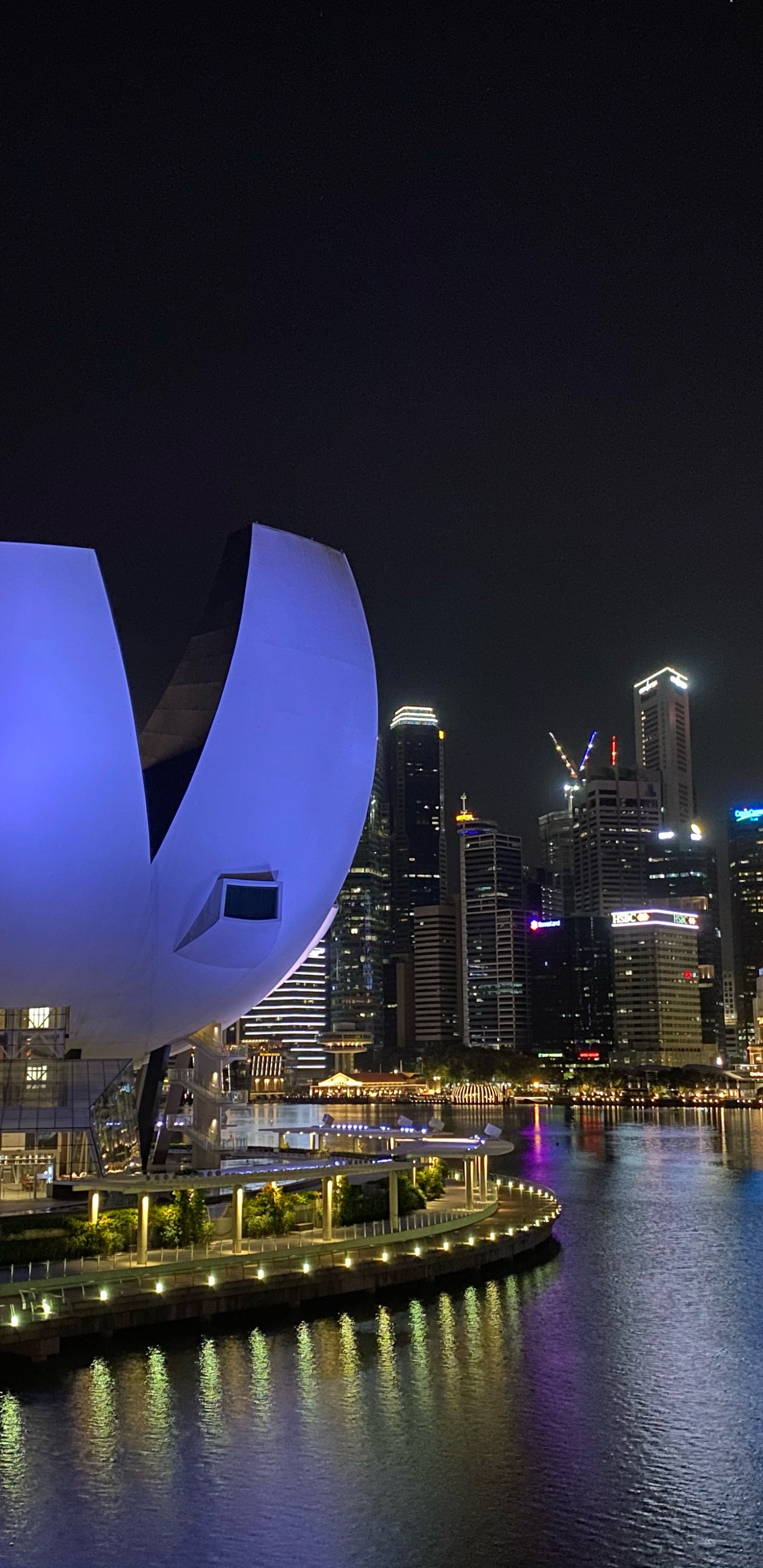 Обои отражение, небоскреб, вода, ночь, город для Samsung Galaxy S8/S8+/S9/S9+/Note 8/Note 9 QHD, заставка, 1440x2960 картинка