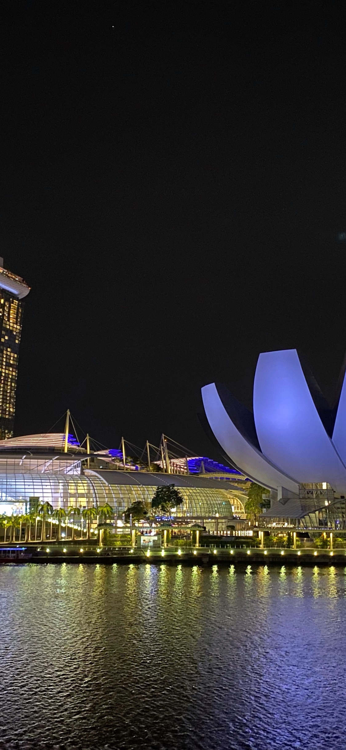Обои отражение, Ангкор ВАТ, вода, ночь, город для iPhone X / XS, заставка, 1125x2436 картинка