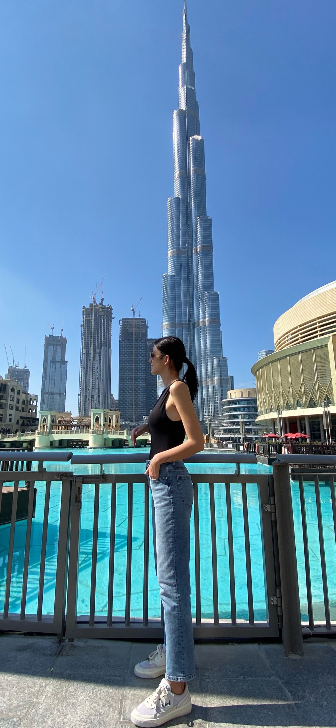 Обои Бурдж-Халифа ночью, одежда, водоем, человек, нога для iPhone X / XS, заставка, 1125x2436 картинка
