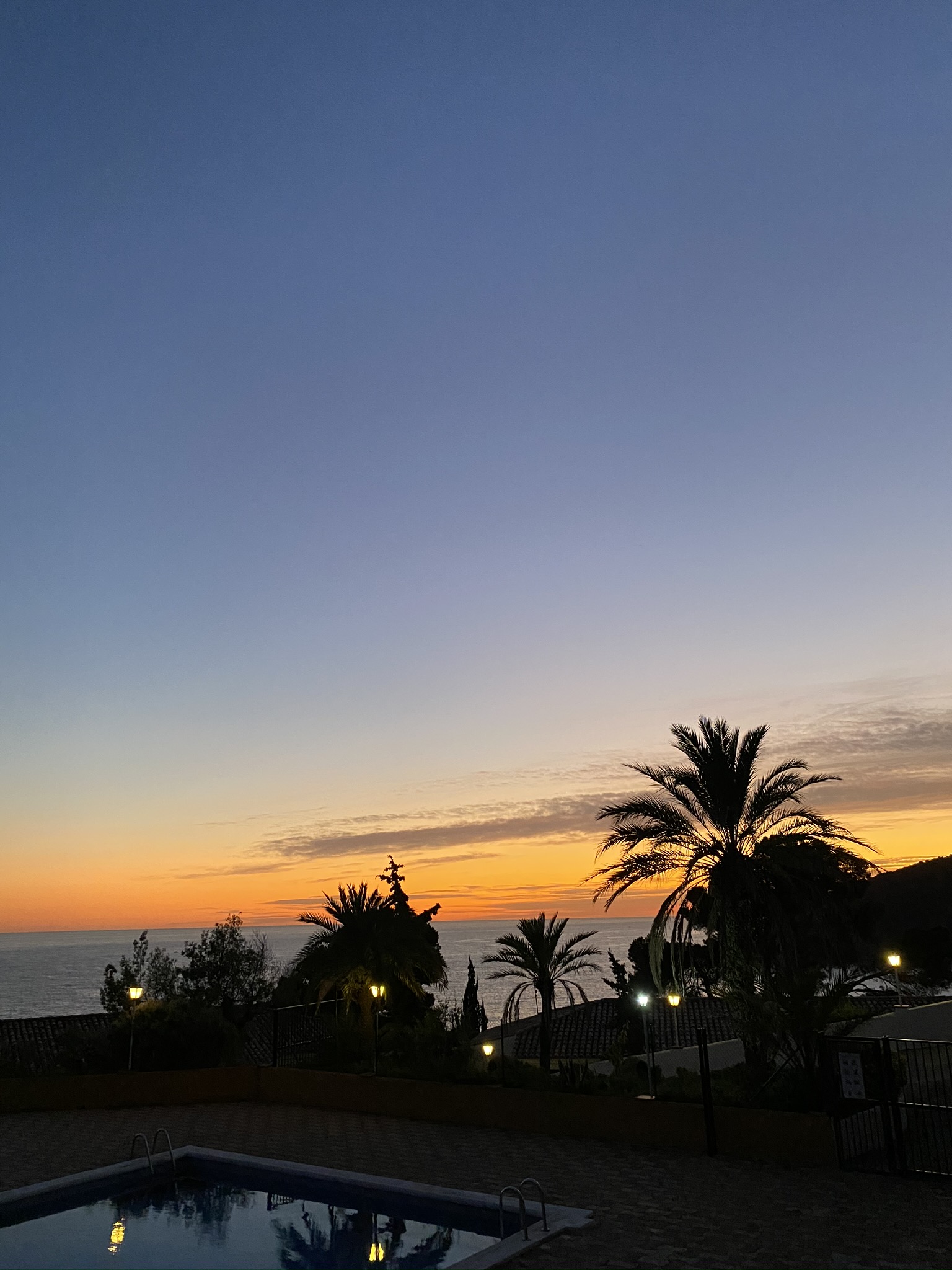 Обои пальмовые рощи, закат, сумрак, восход солнца, послесвечение, фото, заставка