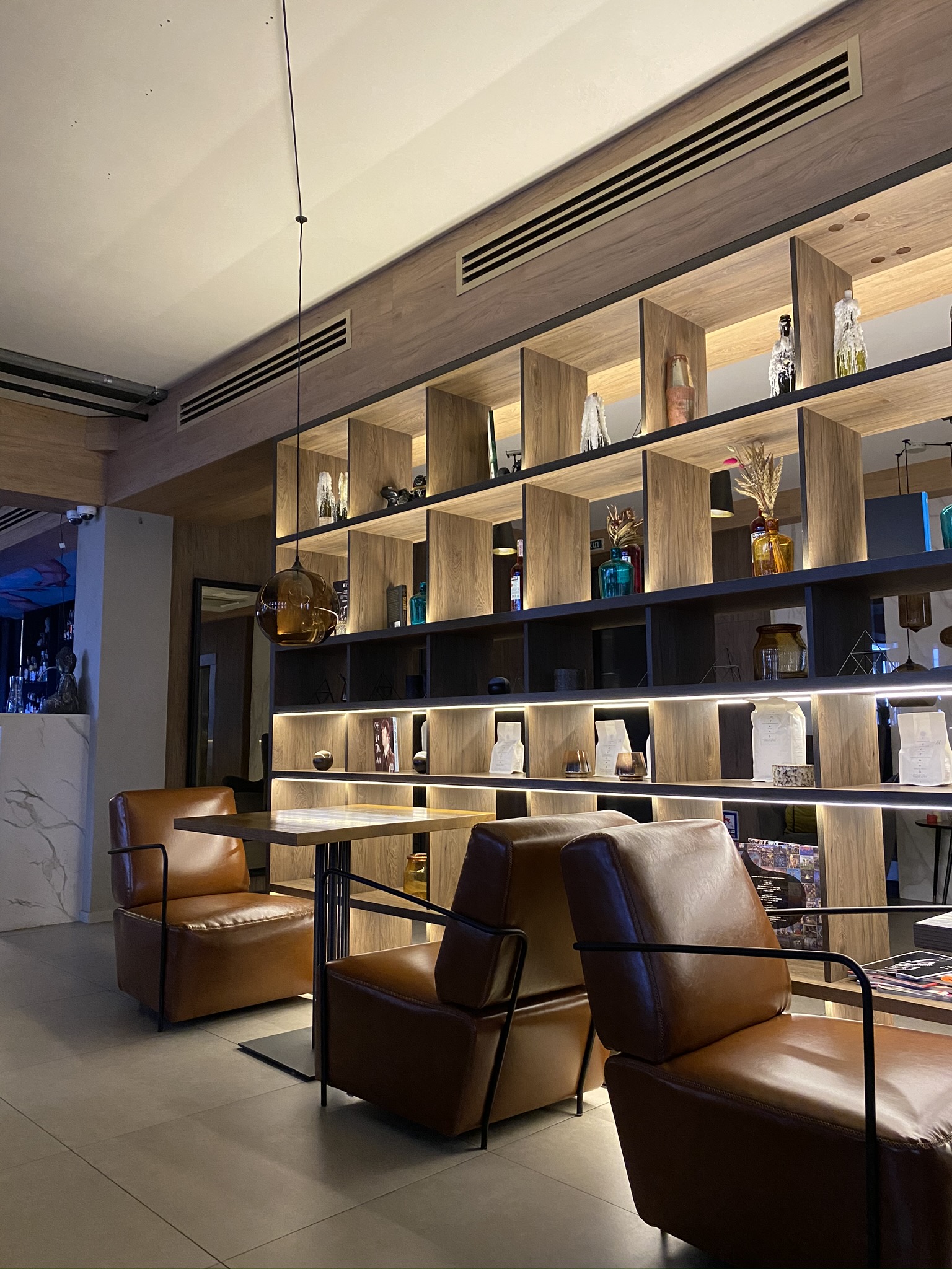 Обои дизайн интерьера, гостиная комната, освещение, комната, полка, фото, заставка