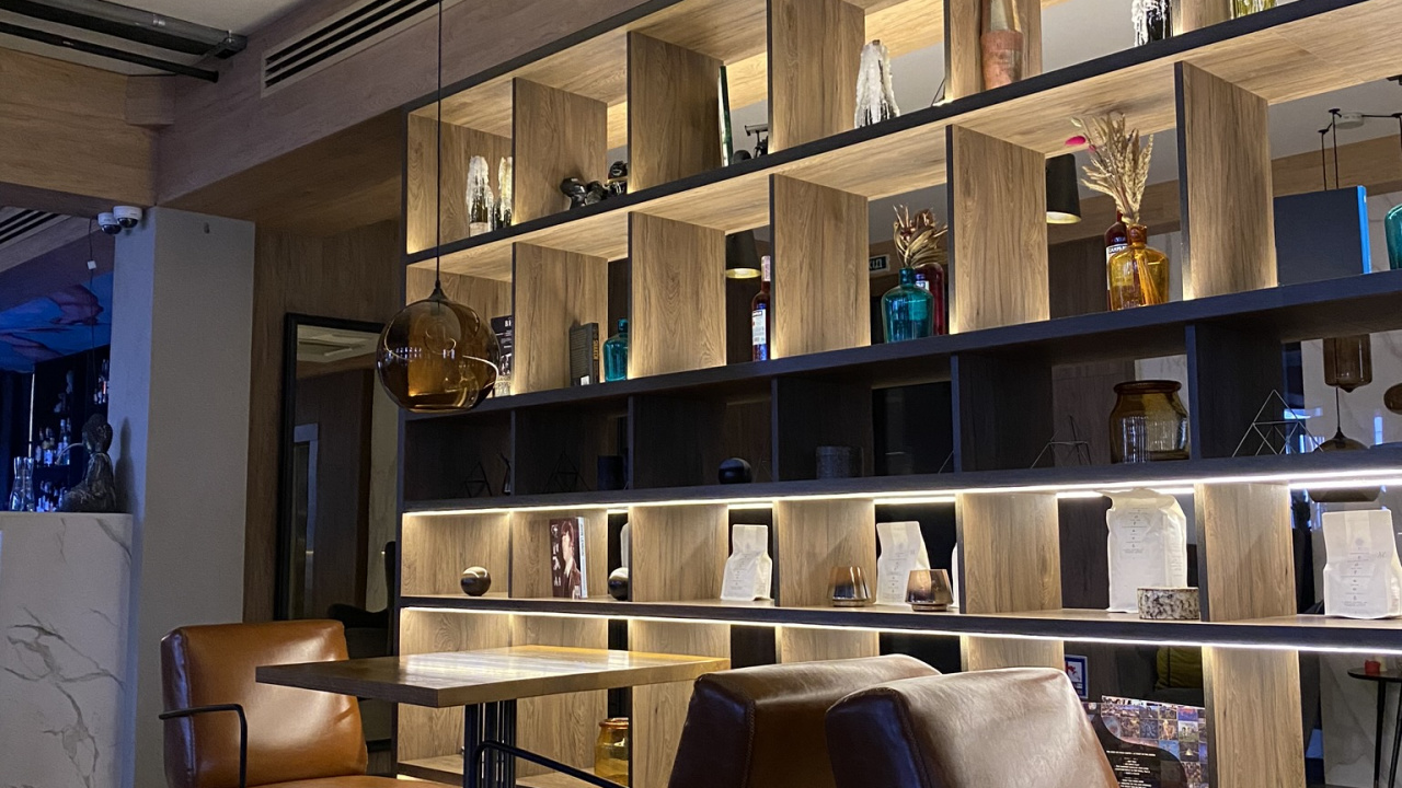 Обои 1280x720 дизайн интерьера, гостиная комната, освещение, комната, полка, HD, HDV, 720p, 16:9 картинка