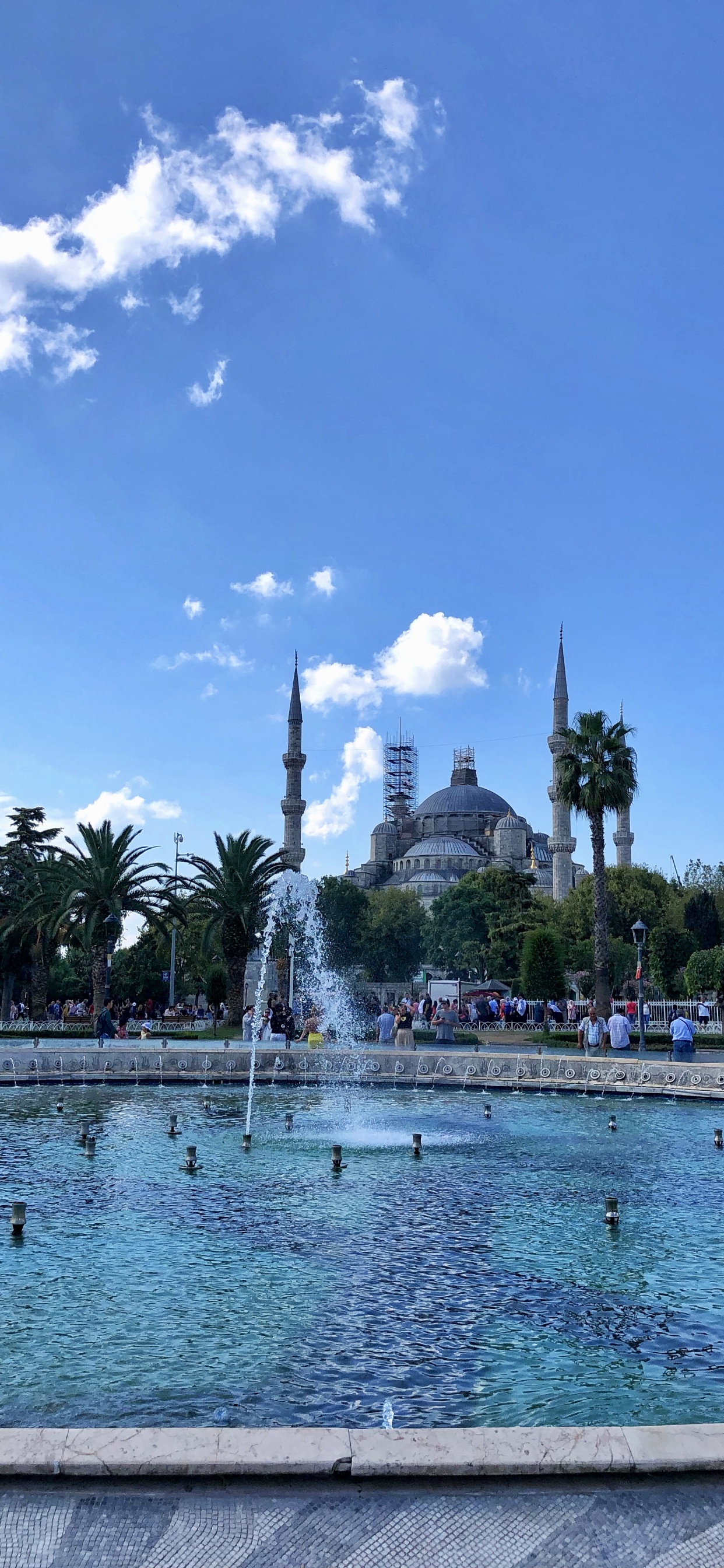 Обои пальмовые рощи, водоем, вода, гидроресурсы, городок для iPhone XS Max, заставка, 1242x2688 картинка