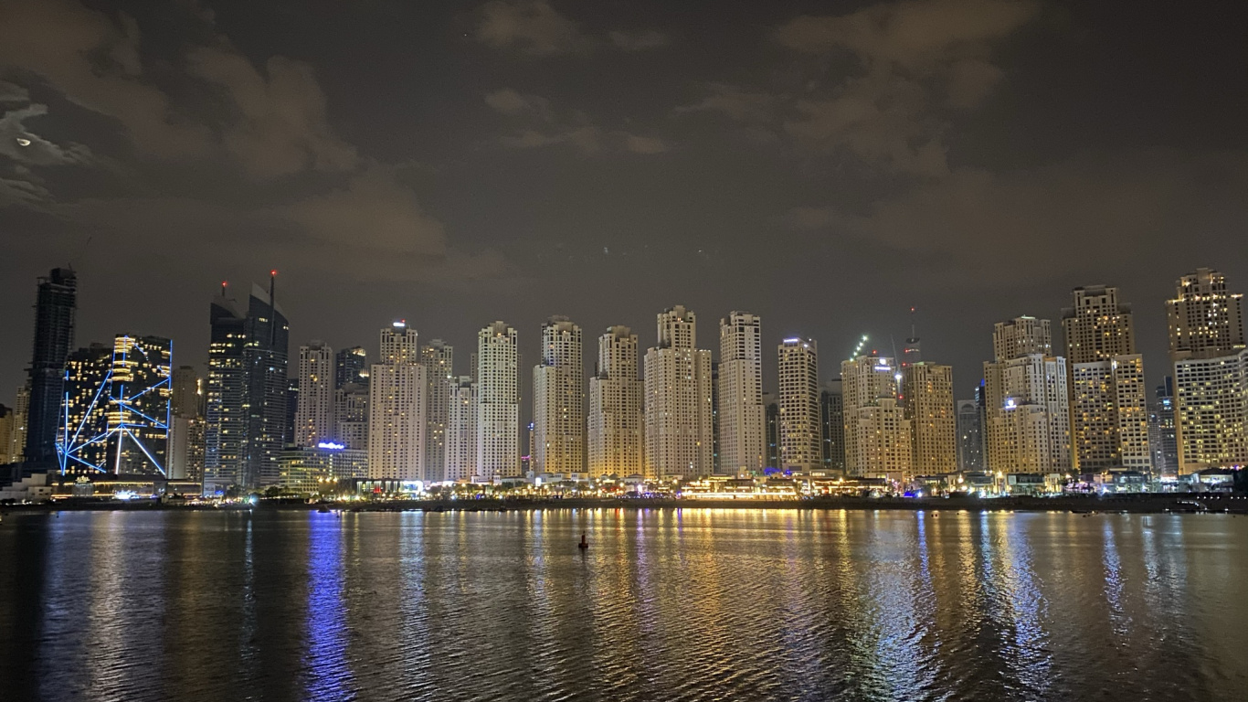 Обои 1366x768 Дубай, городской пейзаж, небоскреб, ночь, башня, HD ready картинка