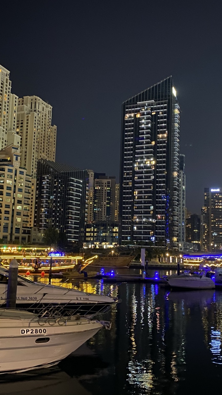 Обои Дубай, Дубай Марина, городской пейзаж, башня, ночь для HD Samsung Galaxy S3/J3/J4/J5, Meizu M5, Sony Xperia L1/L2, заставка, 720x1280 картинка