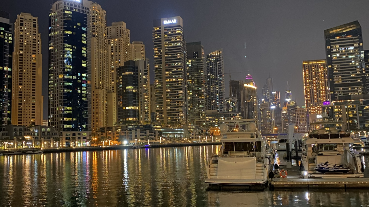 Обои 1280x720 Дубай, Дубай Марина, городской пейзаж, вода, ночь, HD, HDV, 720p, 16:9 картинка
