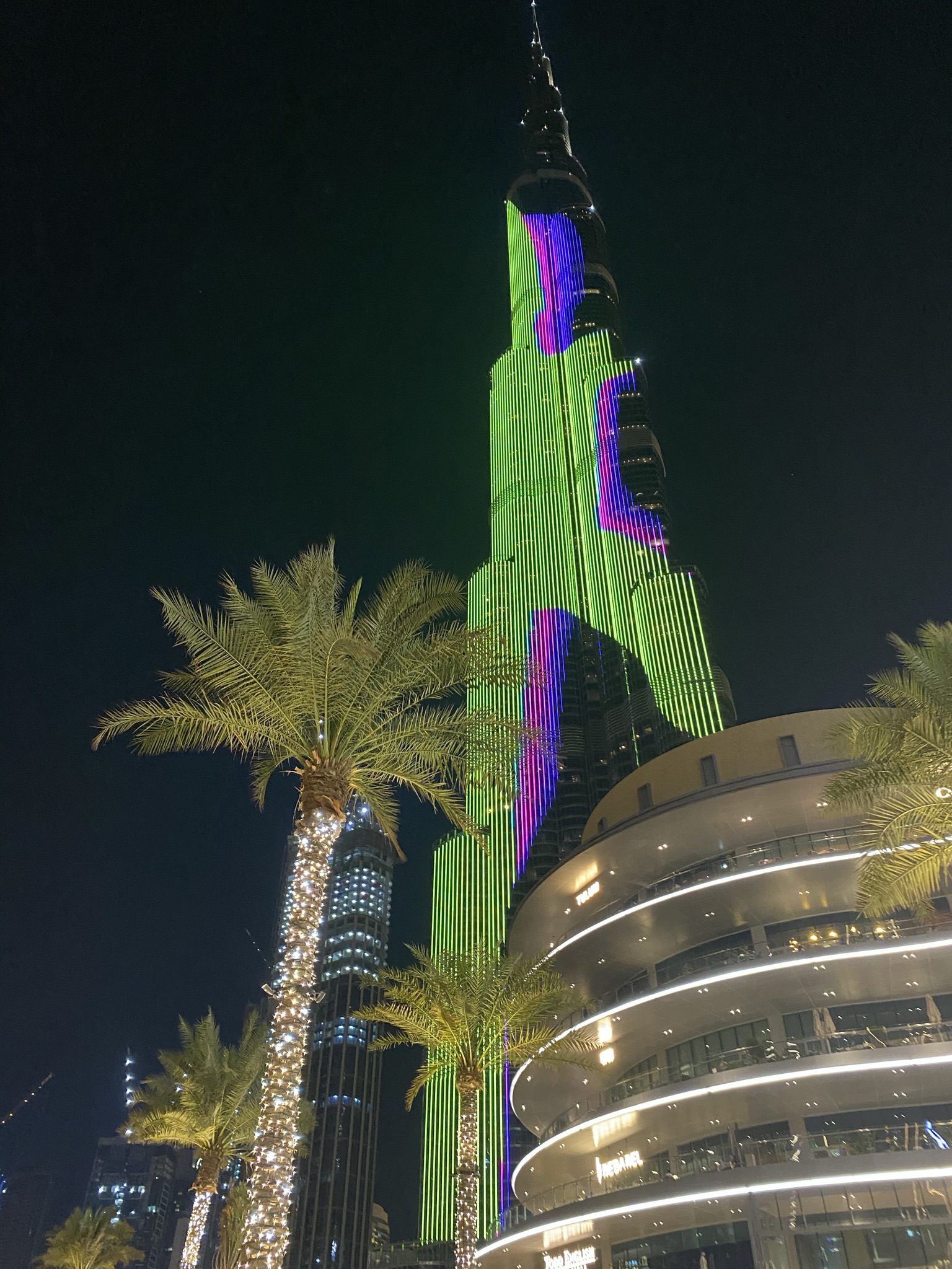 Обои вышка, пальмовые рощи, мажорель синий, фасад, ночь, фото, заставка