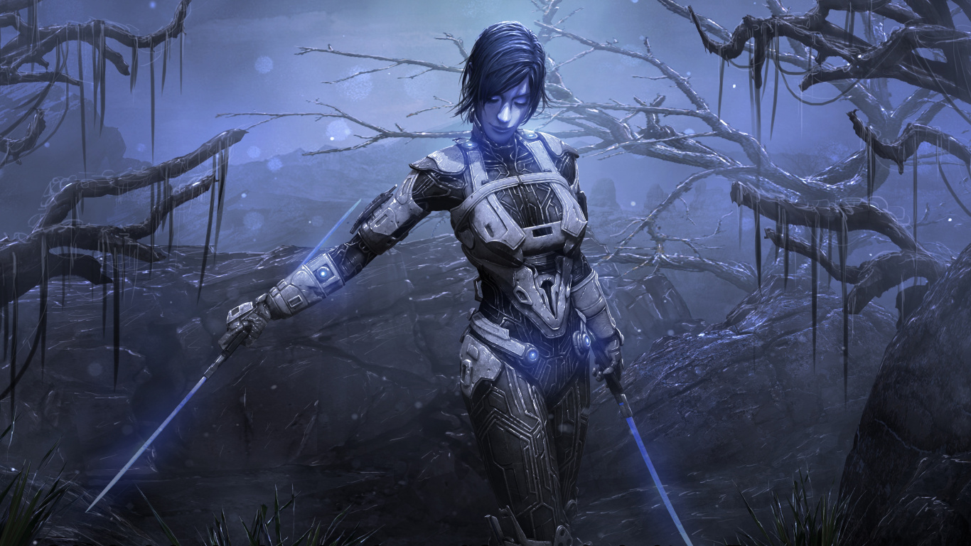 Обои 1366x768 цифровое искусство, арт, Научная фантастика, компьютерная игра, темнота, HD ready картинка