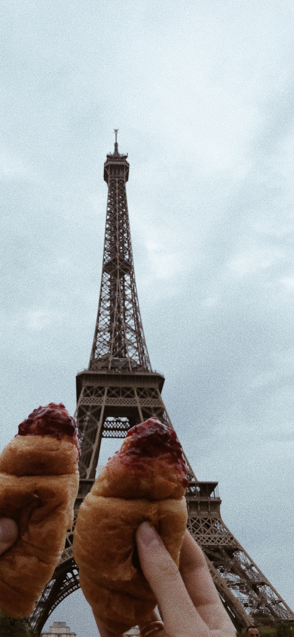 Обои Париж, Эйфелева башня, круассан, Пизанская башня, Марсово поле для iPhone X / XS, заставка, 1125x2436 картинка