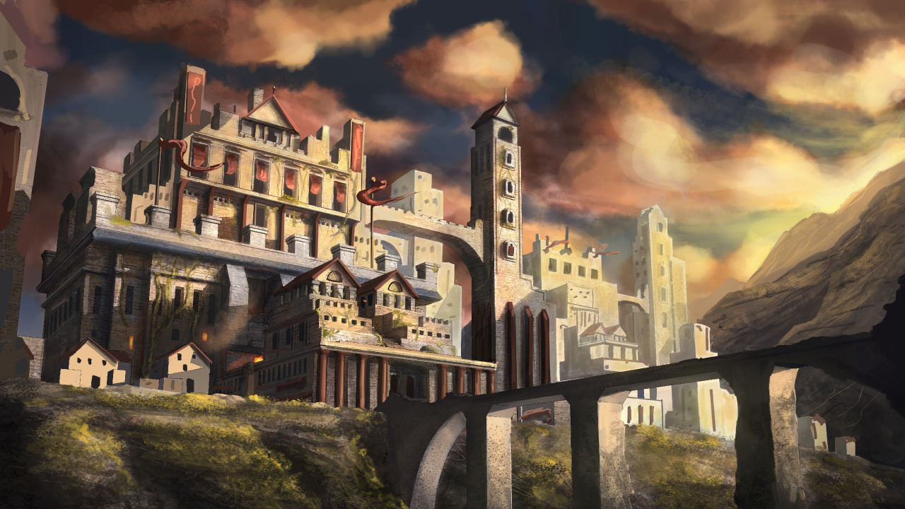 Обои 1280x720 арт, замок, живопись, пейзаж, столица, HD, HDV, 720p, 16:9 картинка