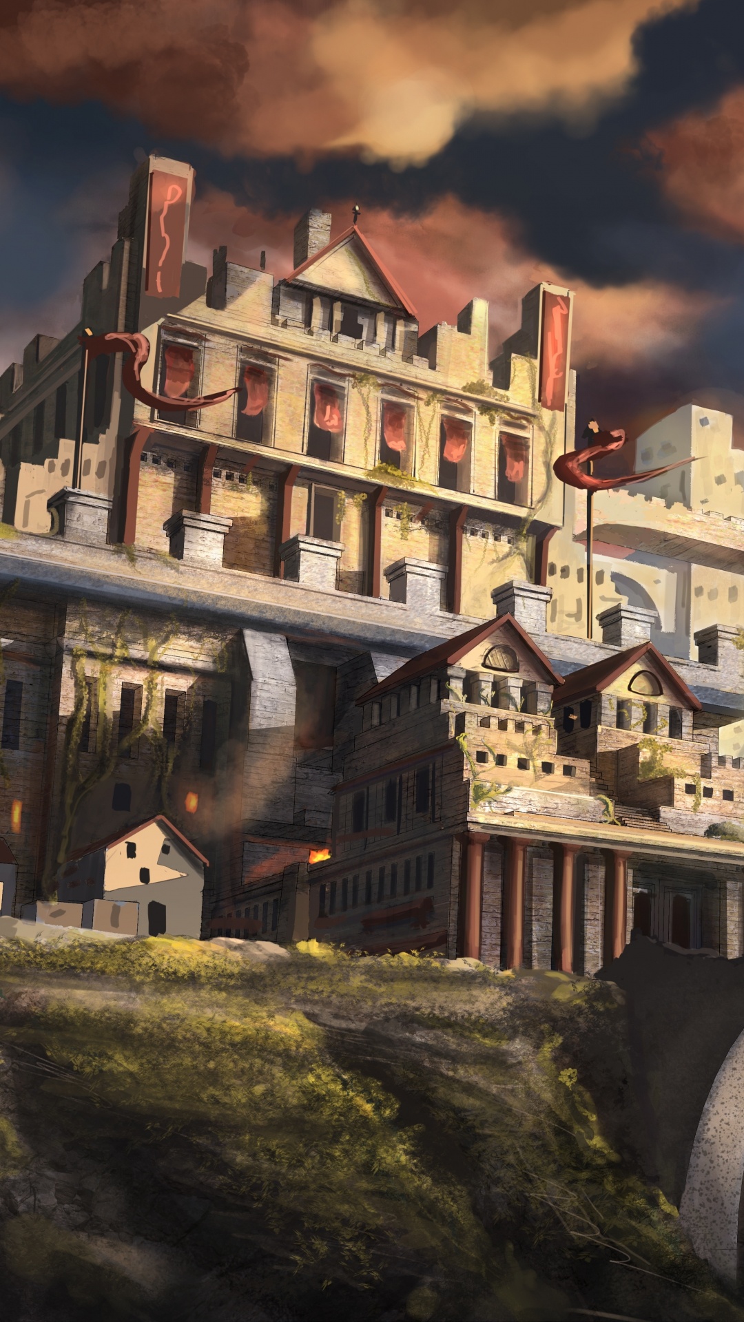 Обои арт, замок, живопись, пейзаж, столица на телефон Android, 1080x1920 Full HD картинки