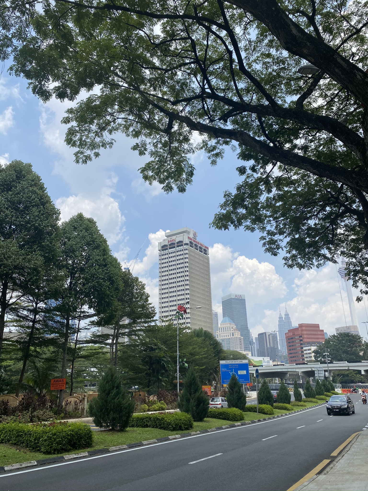 Обои дорога, природа, растительность, башня, жилой район, фото, заставка