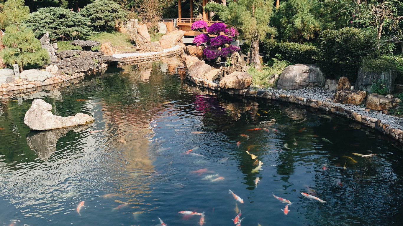 Обои 1366x768 Гонконг, отражение, водоток, гидроресурсы, рыбный пруд, HD ready картинка