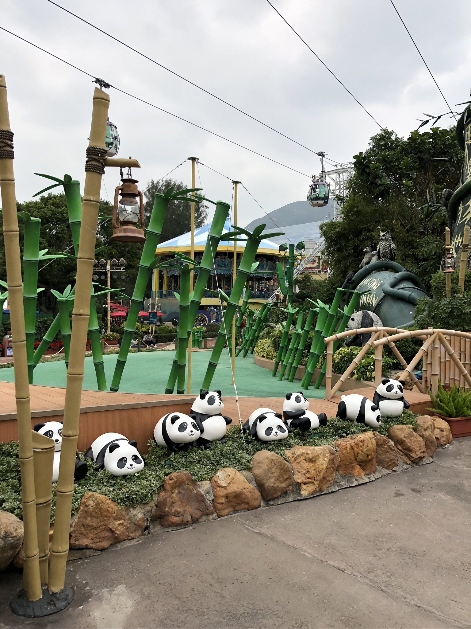 Обои дерево, гигантская панда, поле, электричество, воздушной линии электропередач, фото, заставка