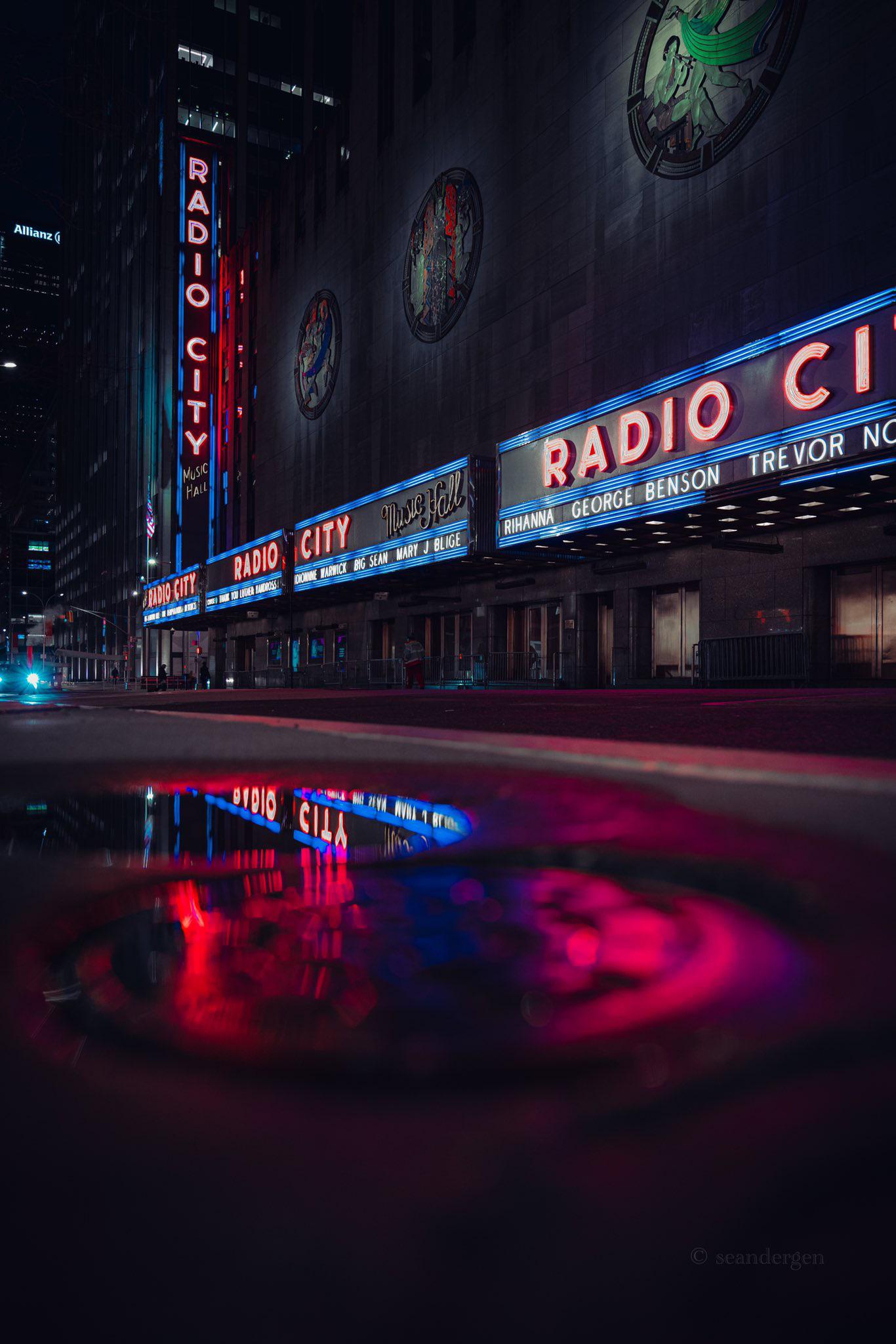 Обои рокфеллеровский центр, автомобильное освещение, здание, электричество, полночь, фото, заставка