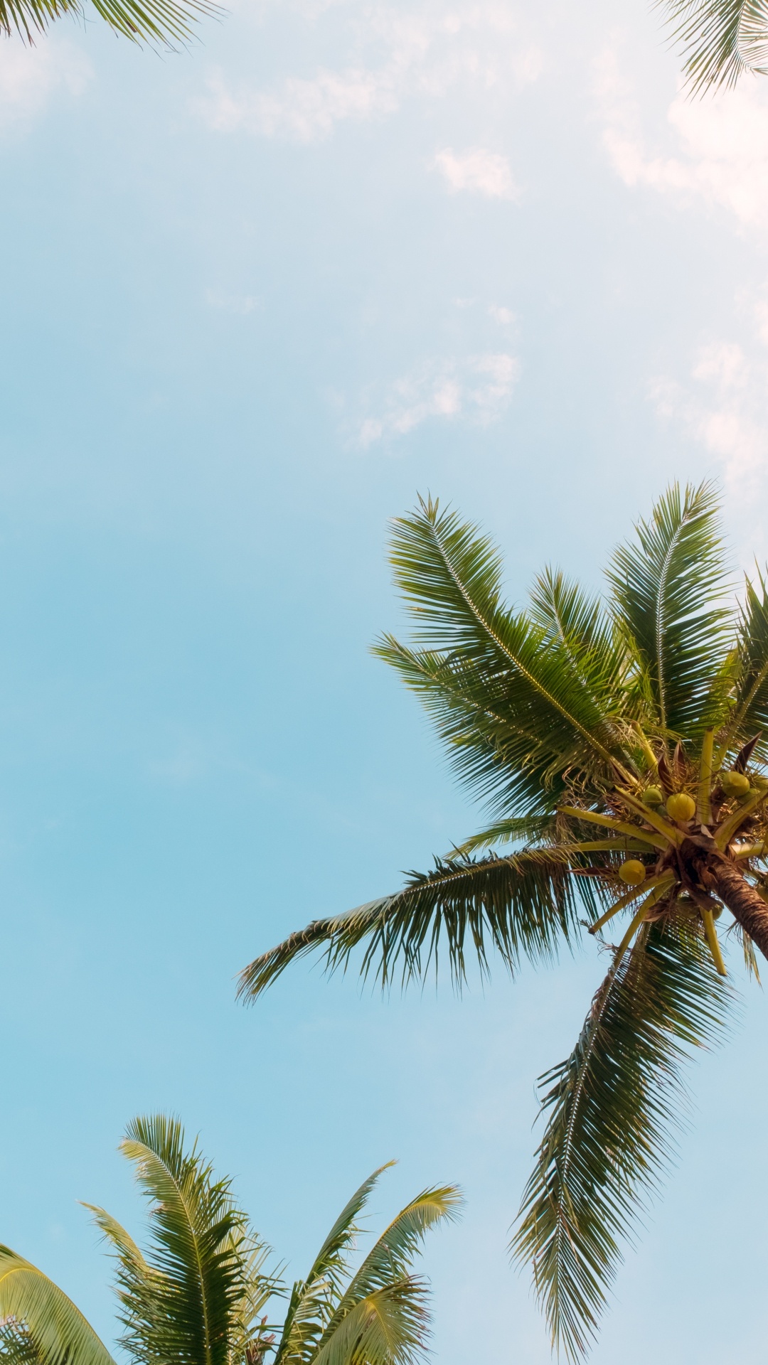 Обои пальмовые рощи, дерево, монохромная живопись, стена, облако для iPhone 6S+/7+/8+, заставка, 1080x1920 картинка