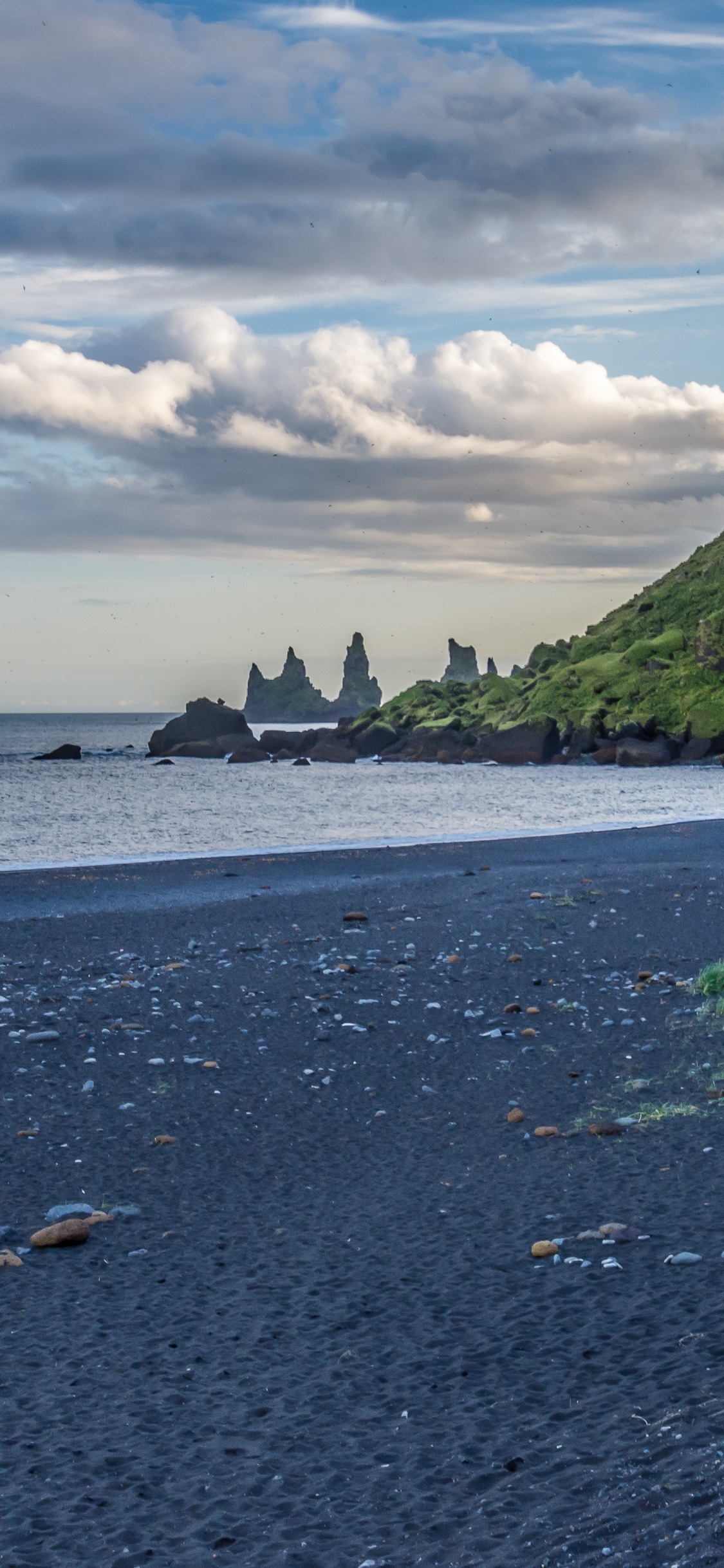 Обои Рейнисдрангар, облако, вода, гидроресурсы, гора для iPhone X / XS, заставка, 1125x2436 картинка