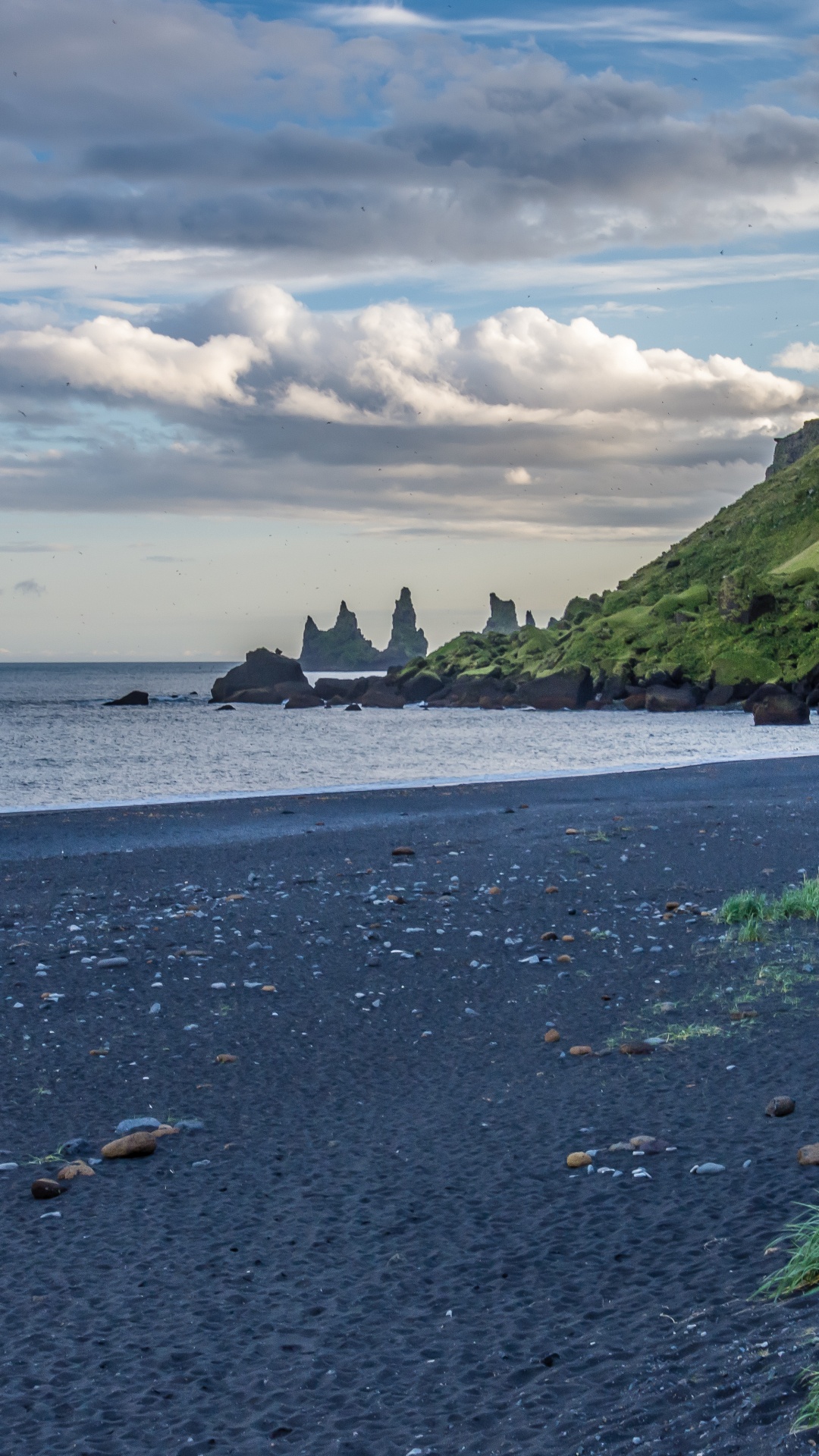 Обои Рейнисдрангар, облако, вода, гидроресурсы, гора для iPhone 6S+/7+/8+, заставка, 1080x1920 картинка