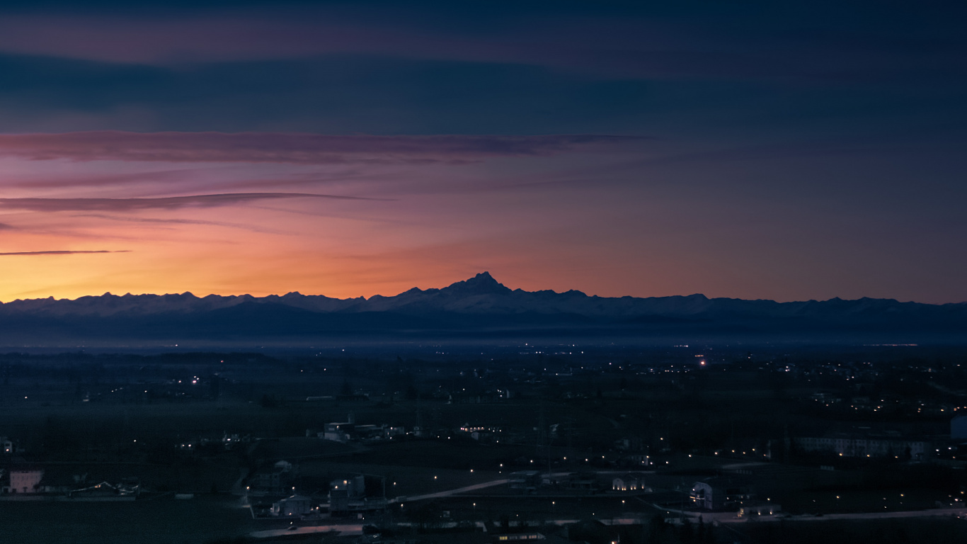 Обои 1366x768 атмосфера, облако, здание, послесвечение, сумрак, HD ready картинка