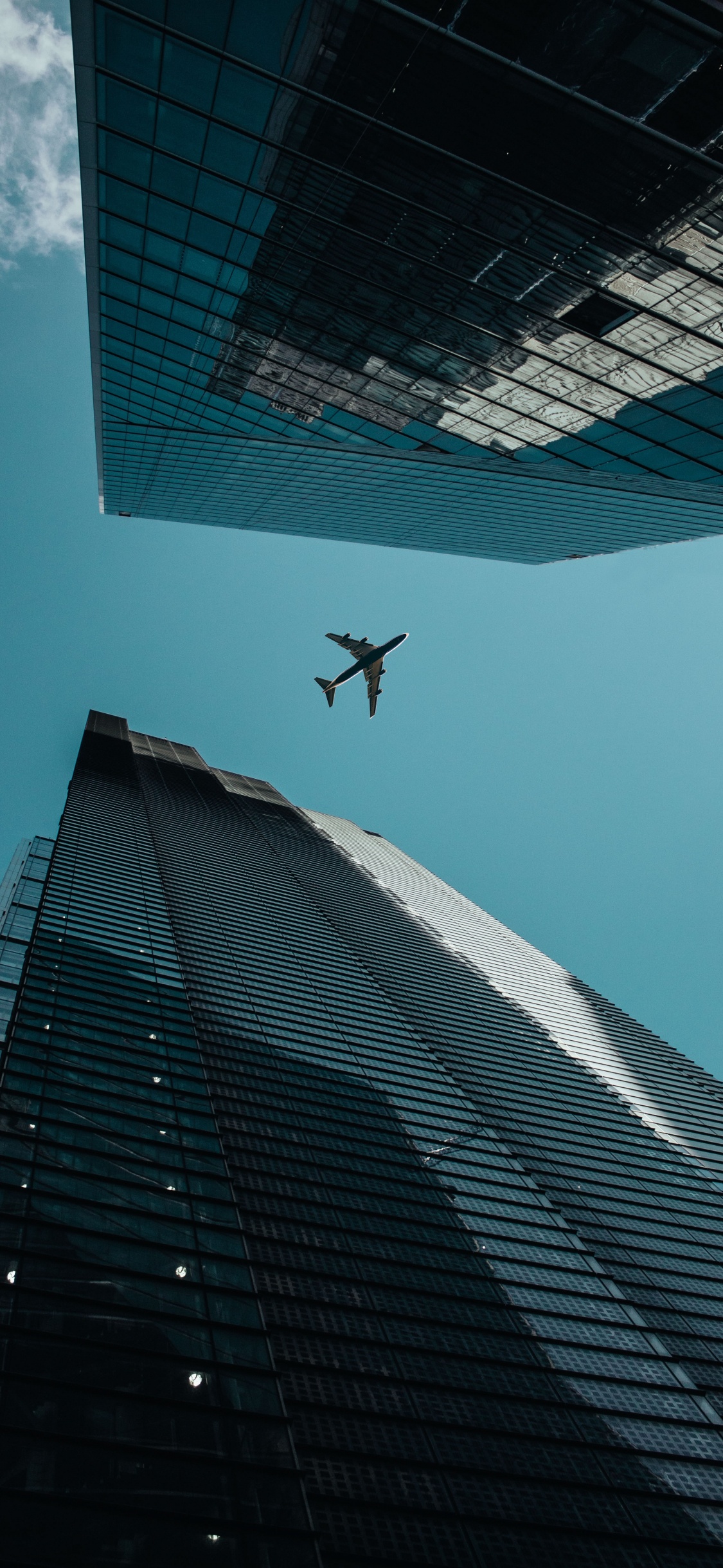 Обои самолет, полет, самолеты, здание, небоскреб для iPhone X / XS, заставка, 1125x2436 картинка