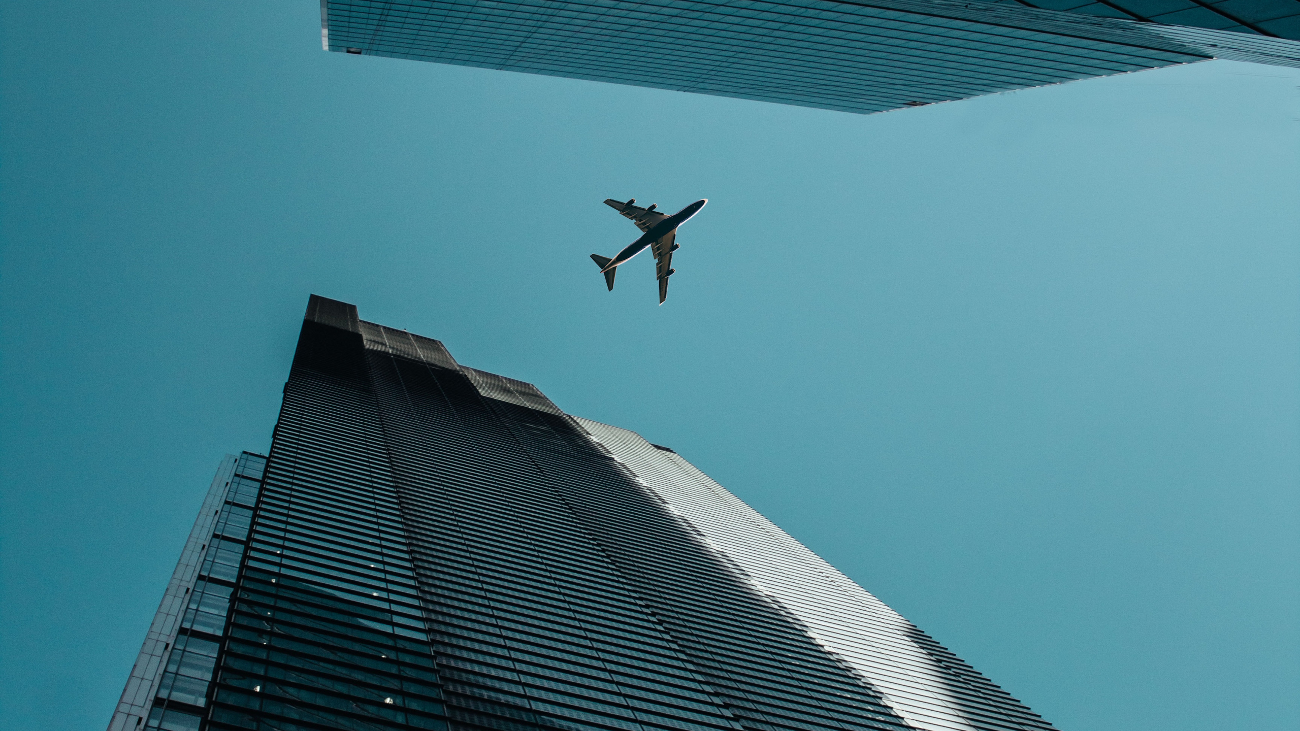 Обои 2560x1440 самолет, полет, самолеты, здание, небоскреб, WQHD, QHD, 16:9 картинка