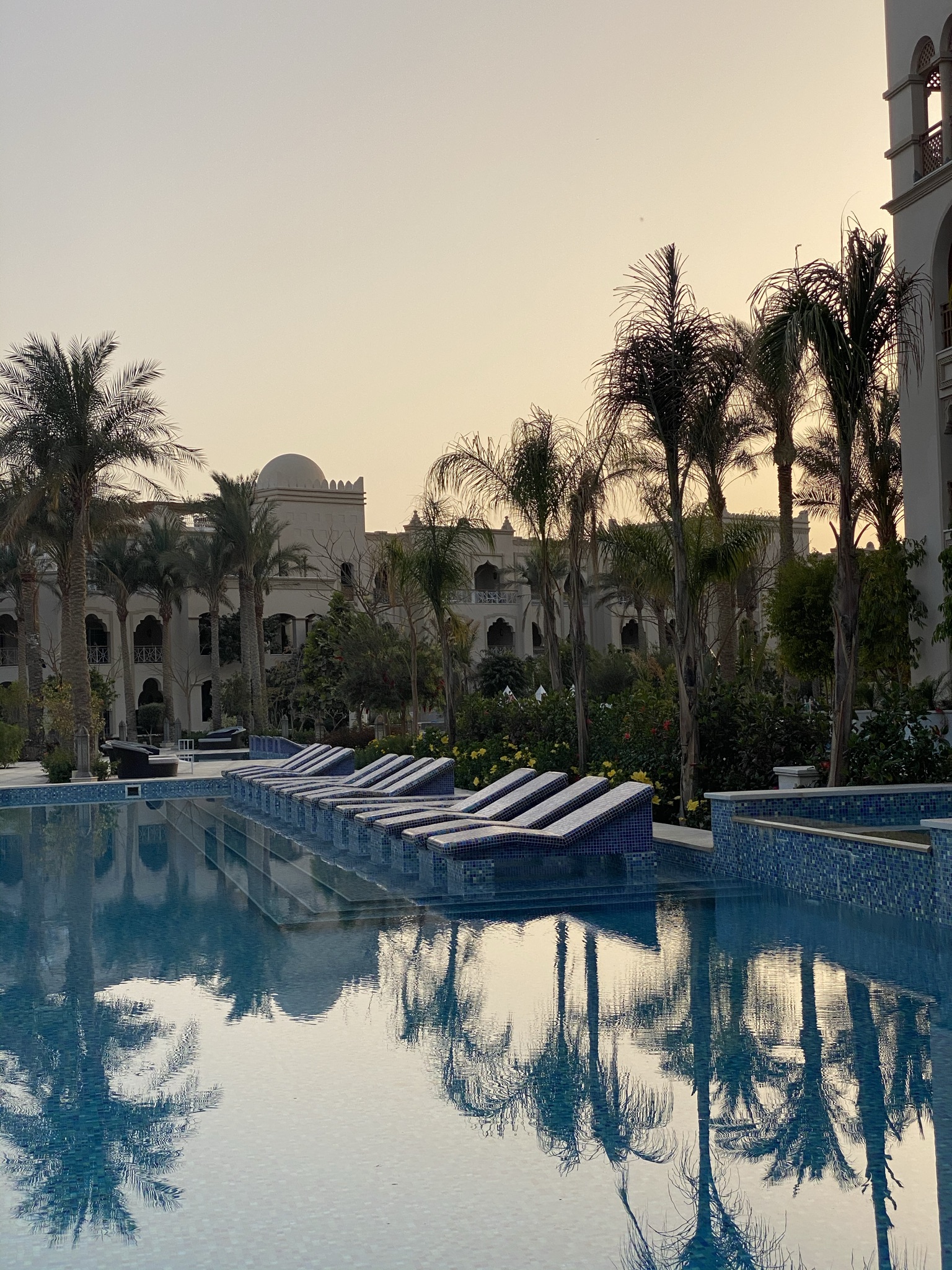 Обои отражение, вода, растение, здание, плавательный бассейн, фото, заставка