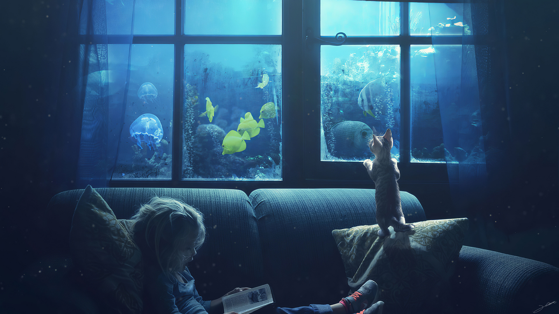 Обои 1920x1080 5 секунд лета, цифровое искусство, вода, окно, синий, Full HD, HDTV, 1080p 16:9 картинка