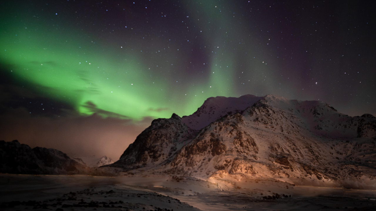 Обои 1280x720 Аврора, Лофотен, атмосфера, облако, свет, HD, HDV, 720p, 16:9 картинка