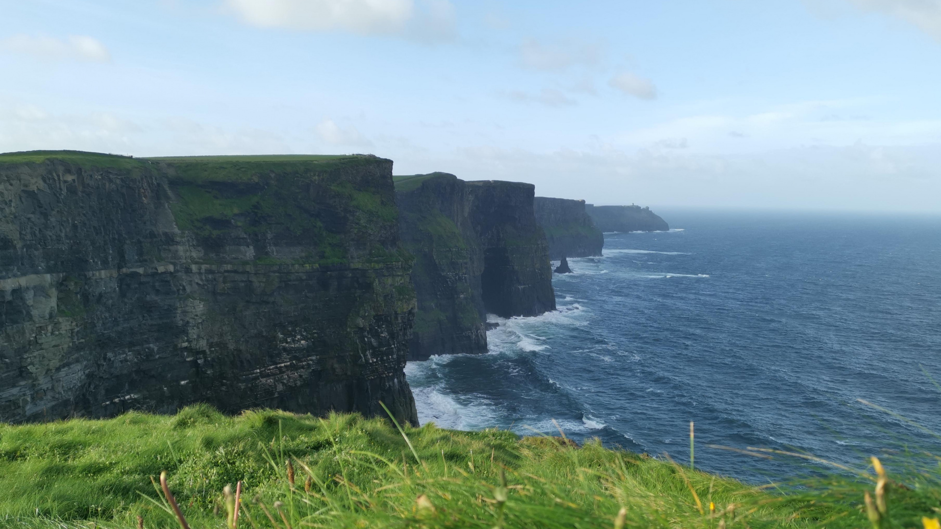 Обои 1920x1080 утесы мохер, обрыв, бухточка, облако, растение, Full HD, HDTV, 1080p 16:9 картинка