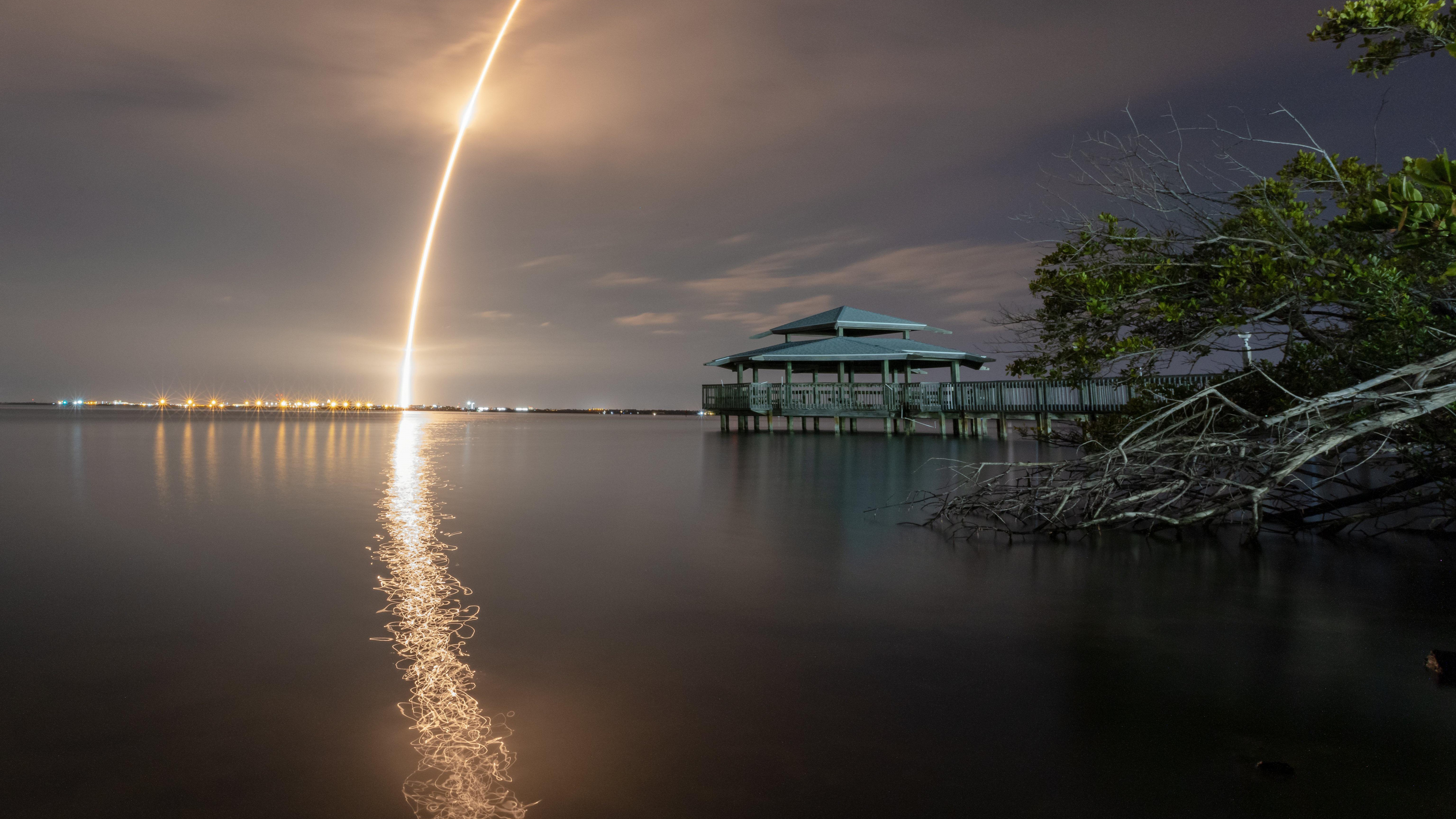 Обои 3840x2160 отражение, постер, арт, ракета, вода, 4K Ultra HD картинка