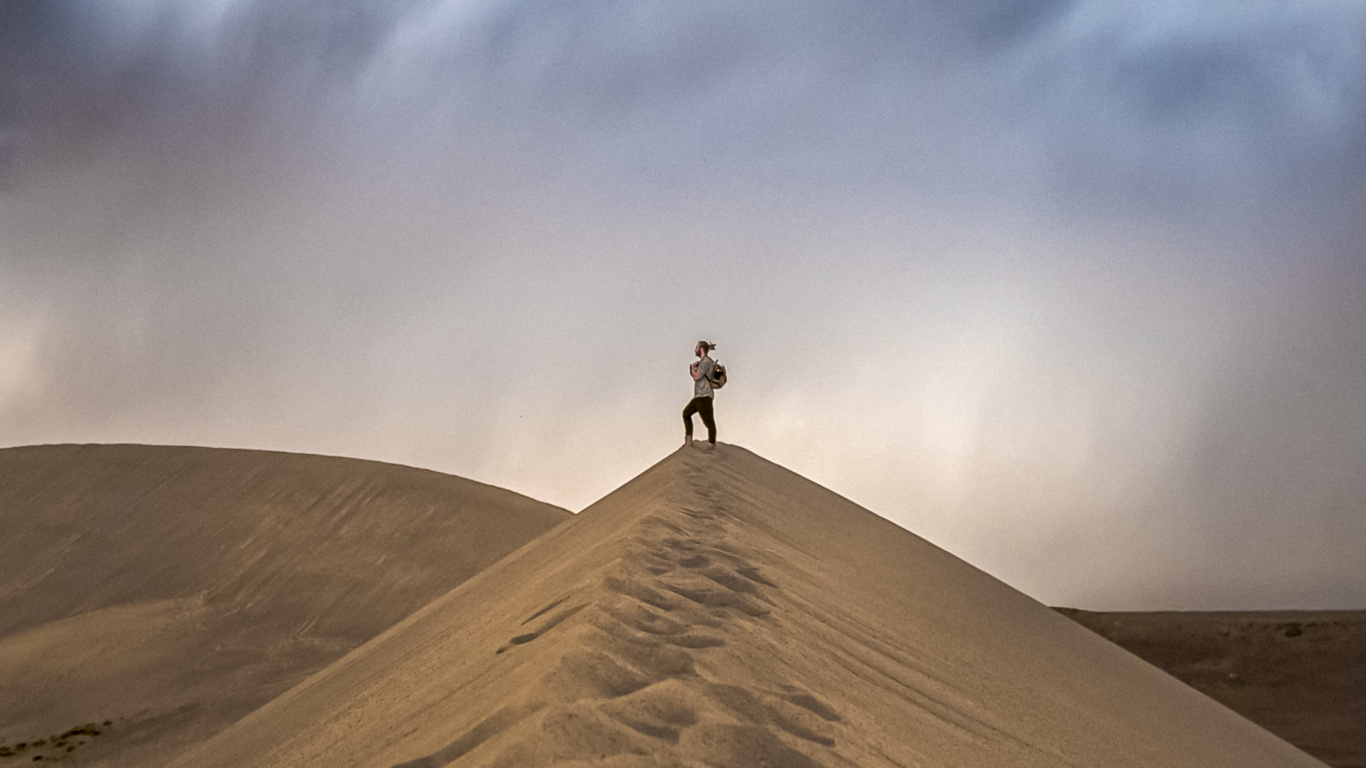 Обои 1366x768 облако, макарон, склон, местность, дерево, HD ready картинка