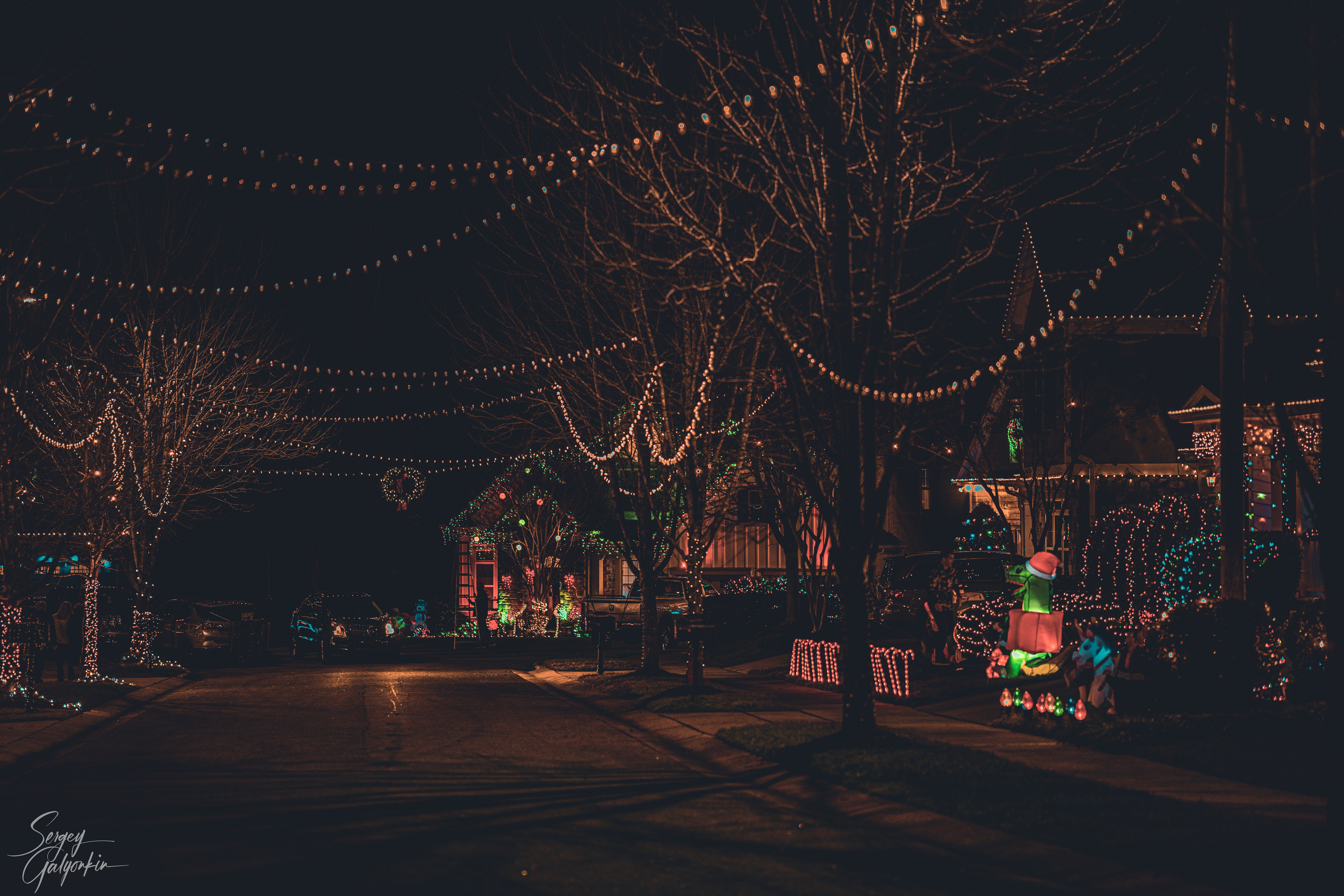 Обои Рождественские огни, гирлянда, уличный фонарь, украшение, орнамент, фото, заставка